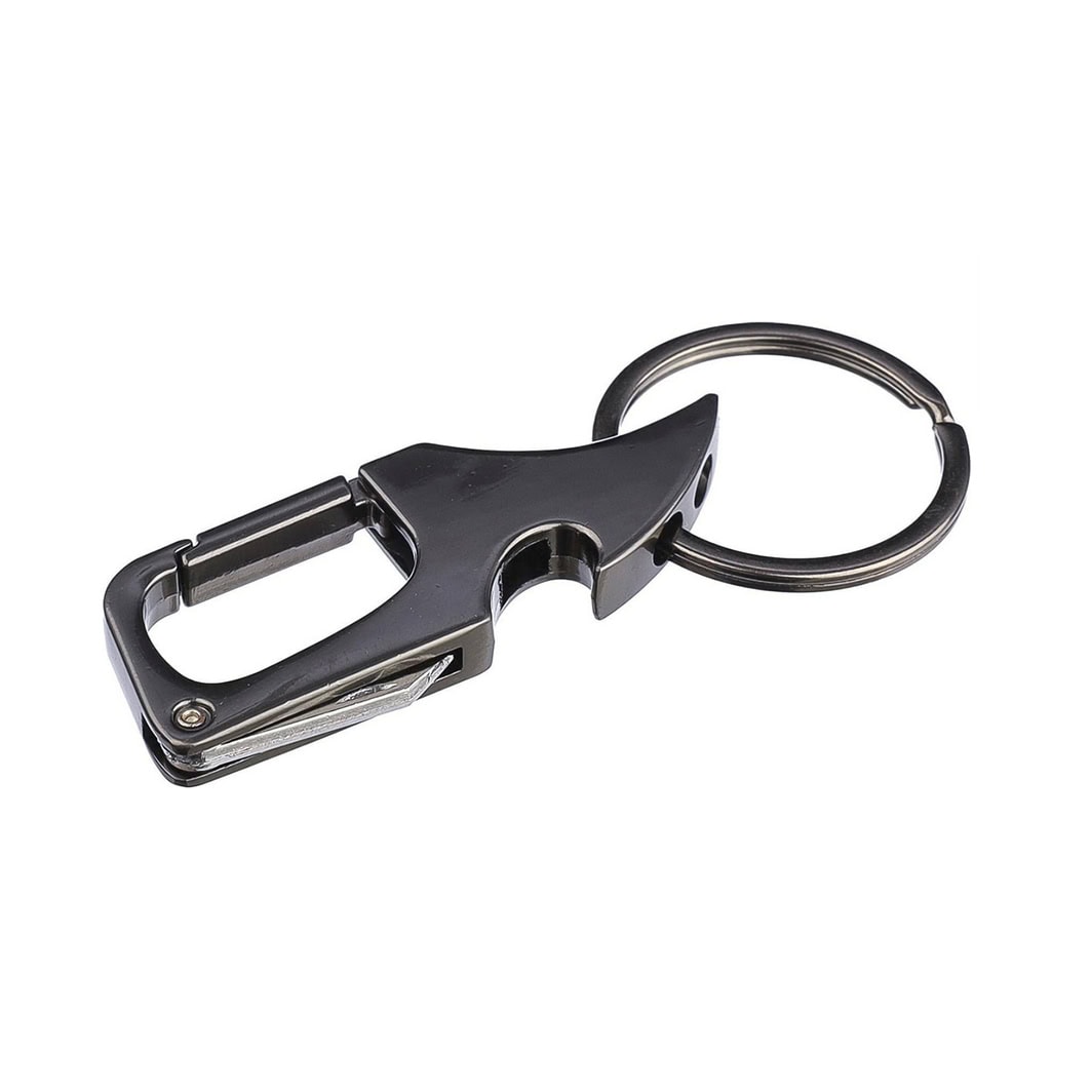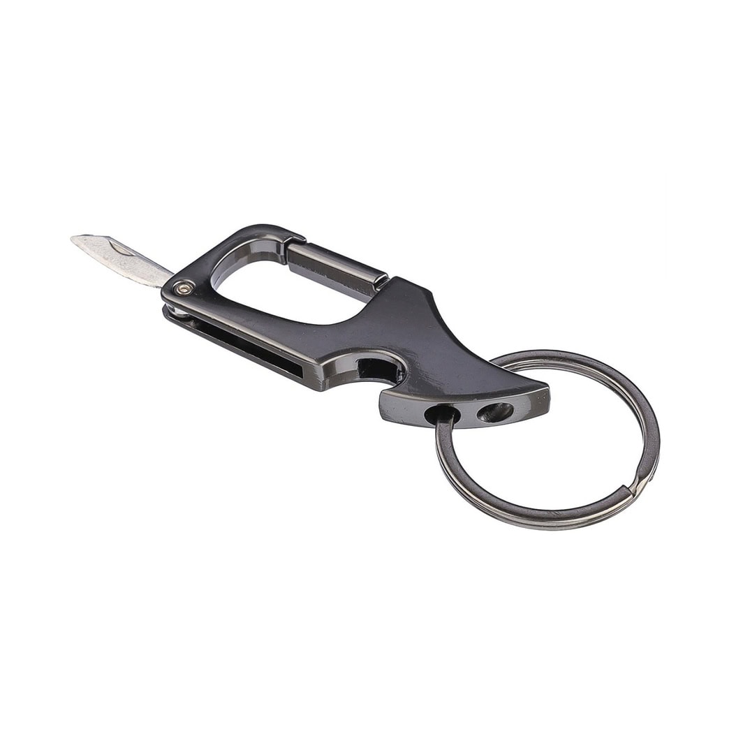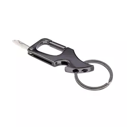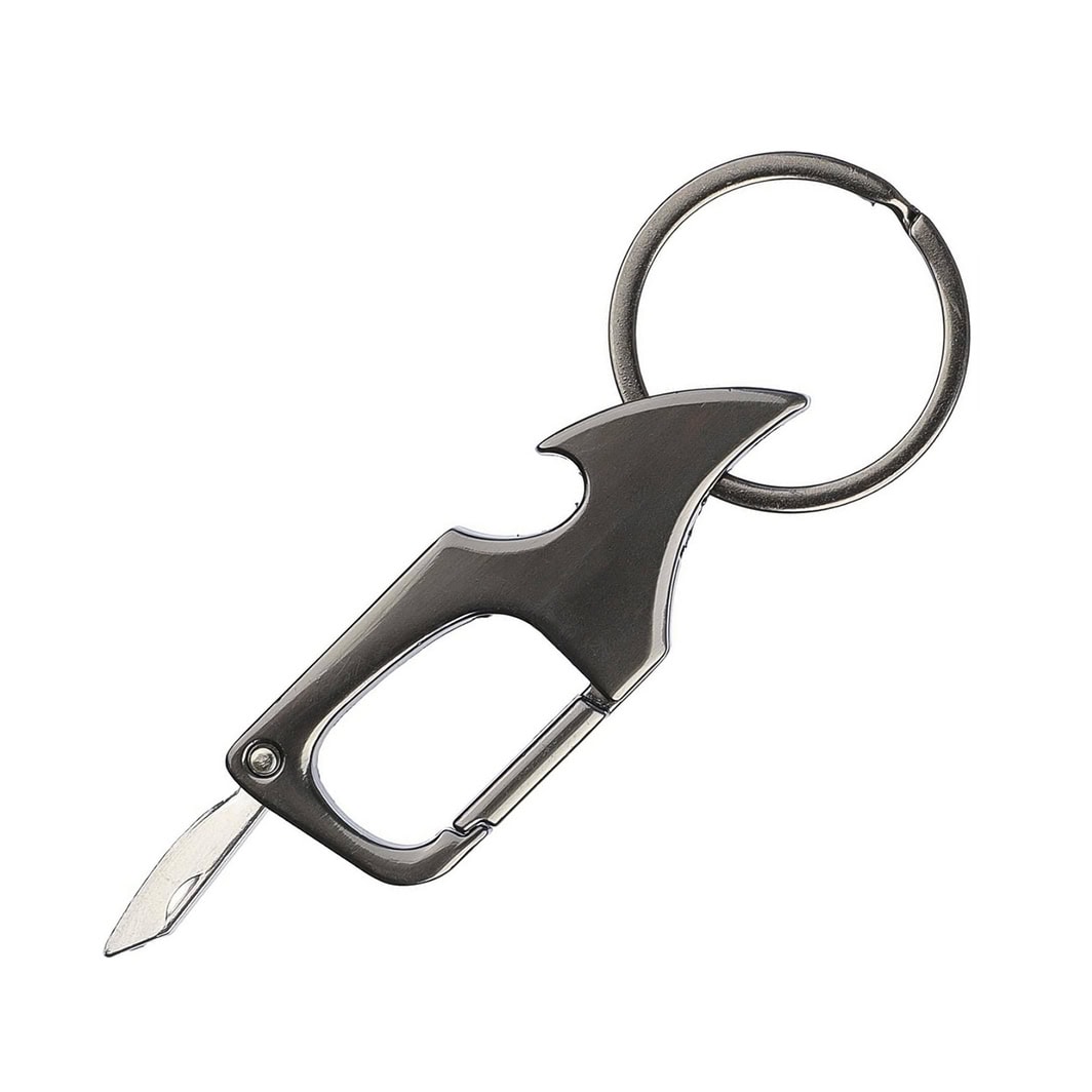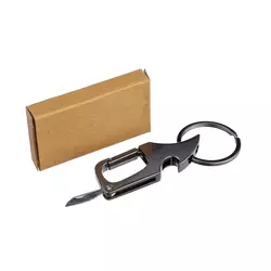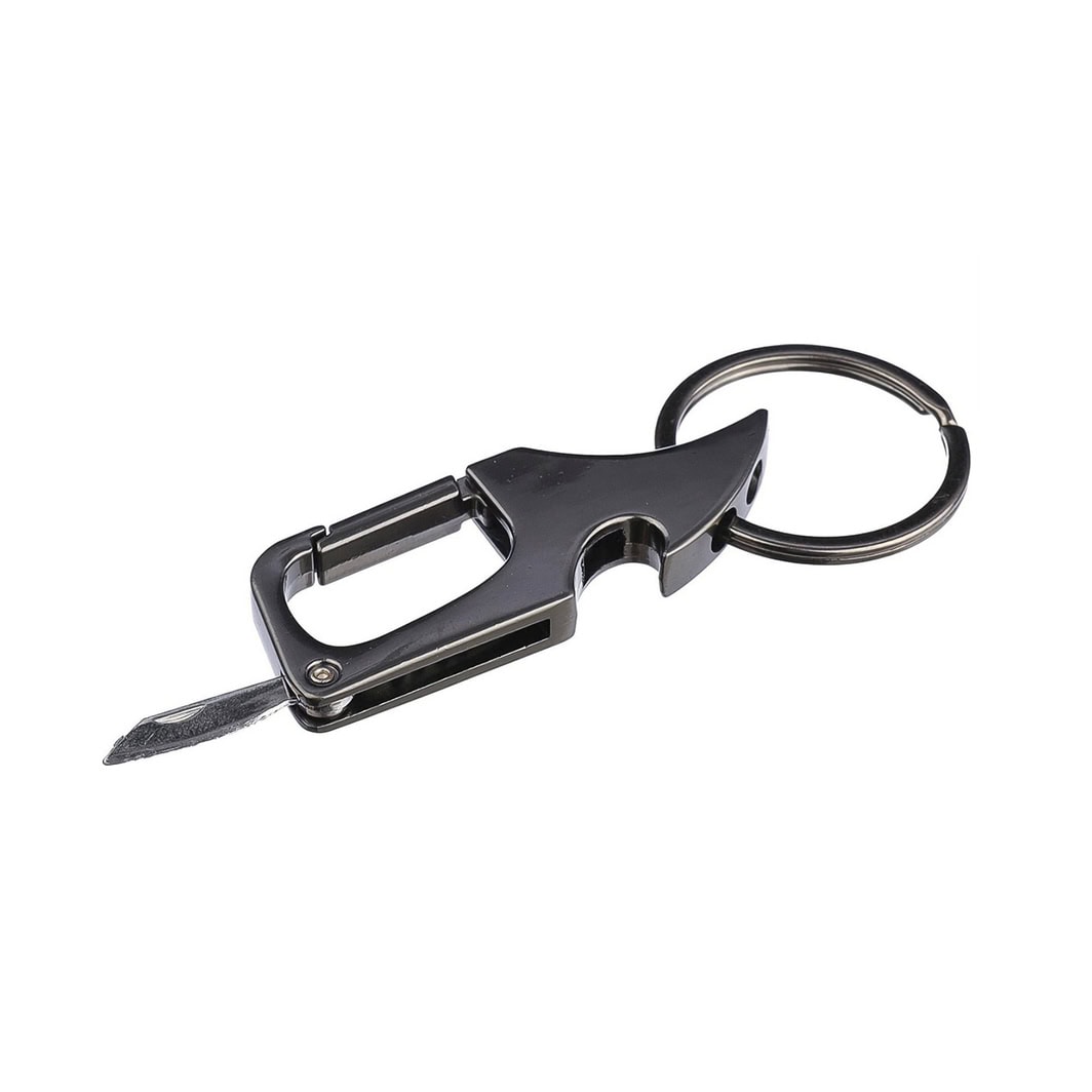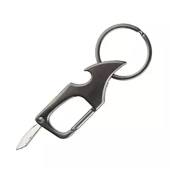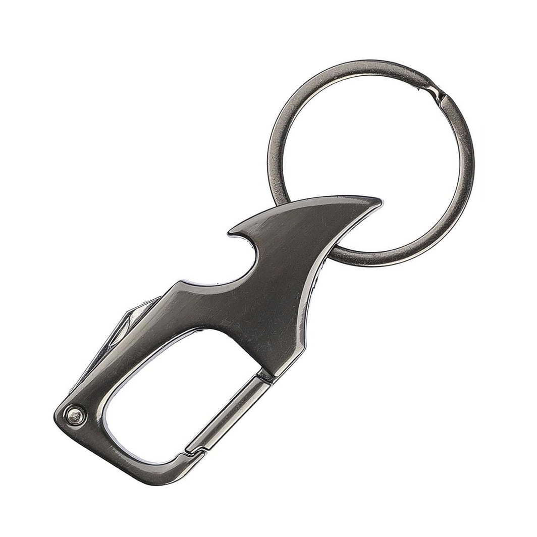 Металевий брелок-мультитул з кільцем для ключів. Поєднує у собі маленький ніж, відкривачку та карабін.