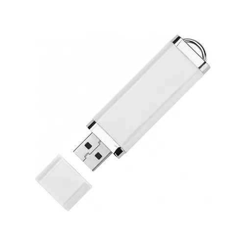 Пластикова флешка з глянцевим корпусом та вушком для кріплення на ремінець. Інтерфейс USB 2.0. Кришка захищає чіп від попадання пилу, а світлодіод на корпусі відображає активність пристрою.