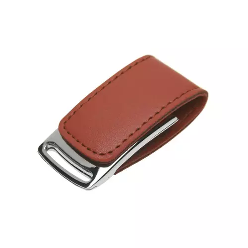 Флешка з глянцевим металевим корпусом та шкіряним чохлом. Інтерфейс USB 2.0. Магнітна застібка захищає чіп від пошкоджень та пилу.