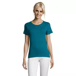 Футболка жіноча Regent - зручна, практична і демократична модель з бічними швами. Комір футболки оброблений рібом з додаванням еластану, зміцнююча тасьма по коміру. Короткий рукав, приталений крій. Футболка виконана з трикотажного кроєного полотна джерсі. Широка колірна гама. Для всіх типів нанесення.