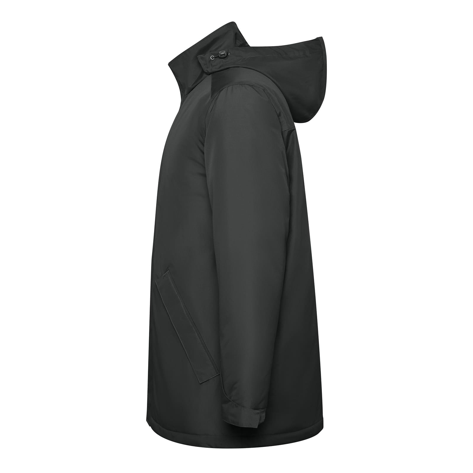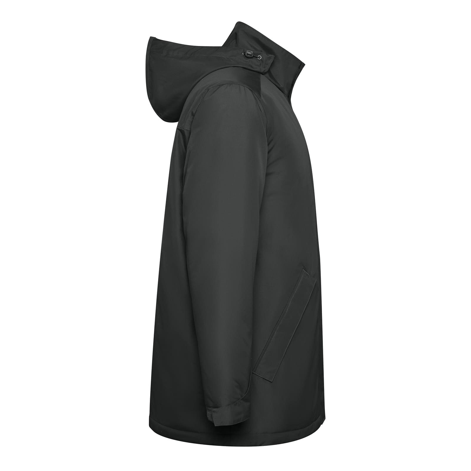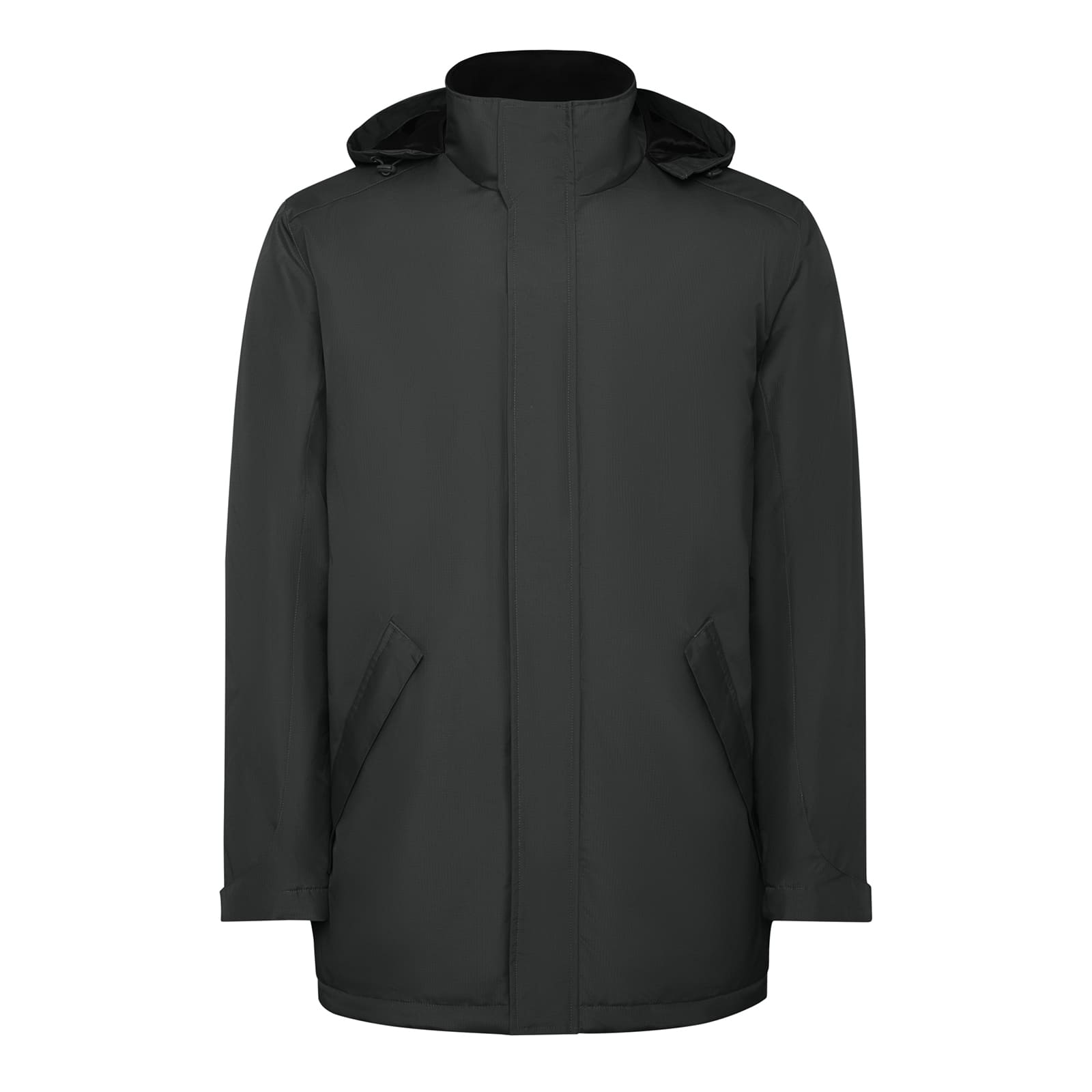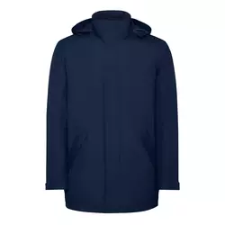 Пухова куртка-парка з від'єднуваним капюшоном та еластичними регуляторами. Водонепроникний матеріал. Спереду блискавка, що прикрита широкою планкою з того ж матеріалу. Манжети з регулятором на липучці. Бічні кишені з відповідними блискавками, прикриті планкою з тканини. Внутрішня кишеня ліворуч. Внутрішній доступ для персоналізації. Зовнішній матеріал: 100% перероблений поліестер Підкладка: 100% перероблений поліестер Наповнювач: 100% перероблений поліестер 400 г/м²