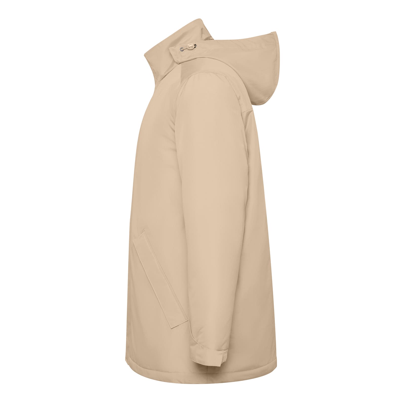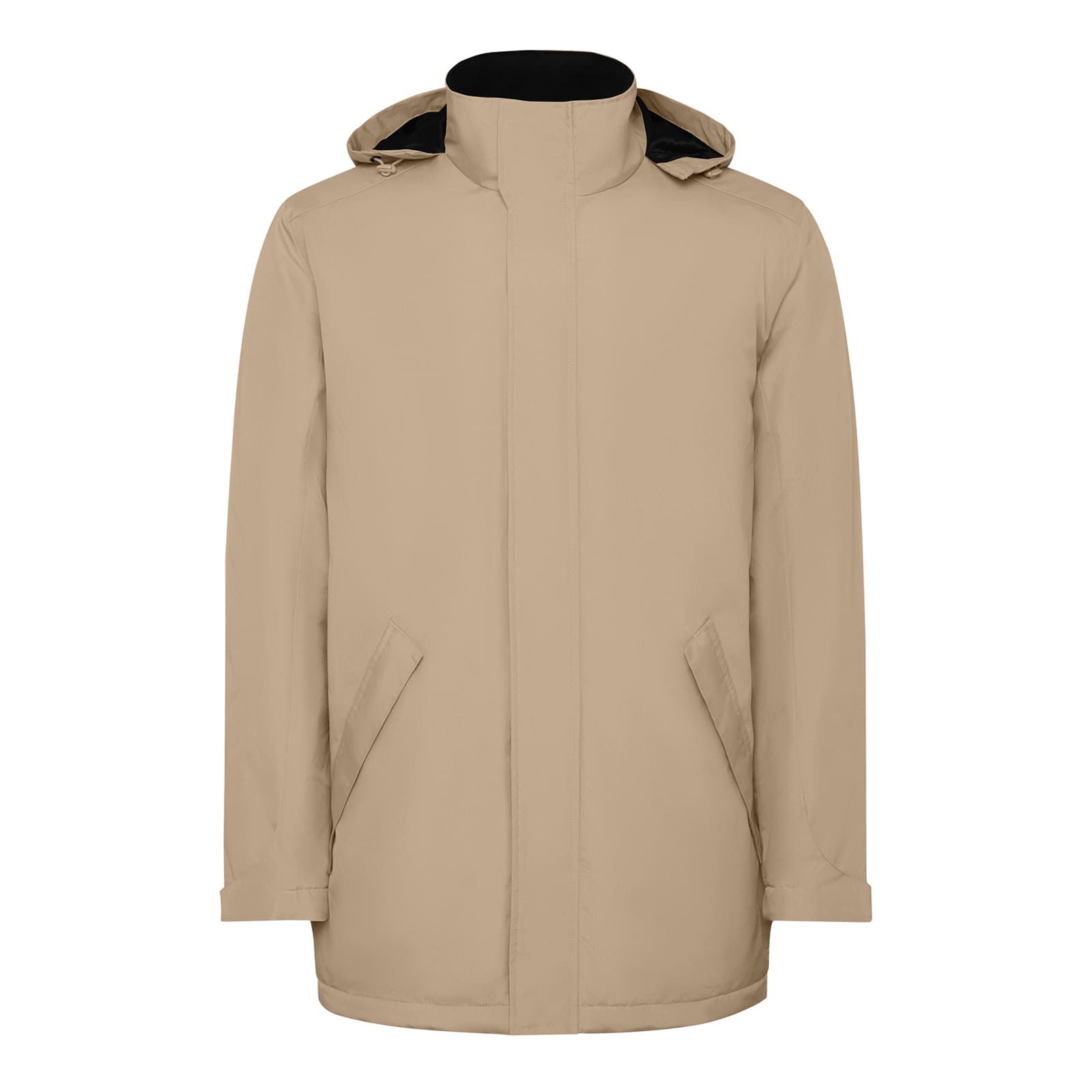 Пухова куртка-парка з від'єднуваним капюшоном та еластичними регуляторами. Водонепроникний матеріал. Спереду блискавка, що прикрита широкою планкою з того ж матеріалу. Манжети з регулятором на липучці. Бічні кишені з відповідними блискавками, прикриті планкою з тканини. Внутрішня кишеня ліворуч. Внутрішній доступ для персоналізації. Зовнішній матеріал: 100% перероблений поліестер Підкладка: 100% перероблений поліестер Наповнювач: 100% перероблений поліестер 400 г/м²