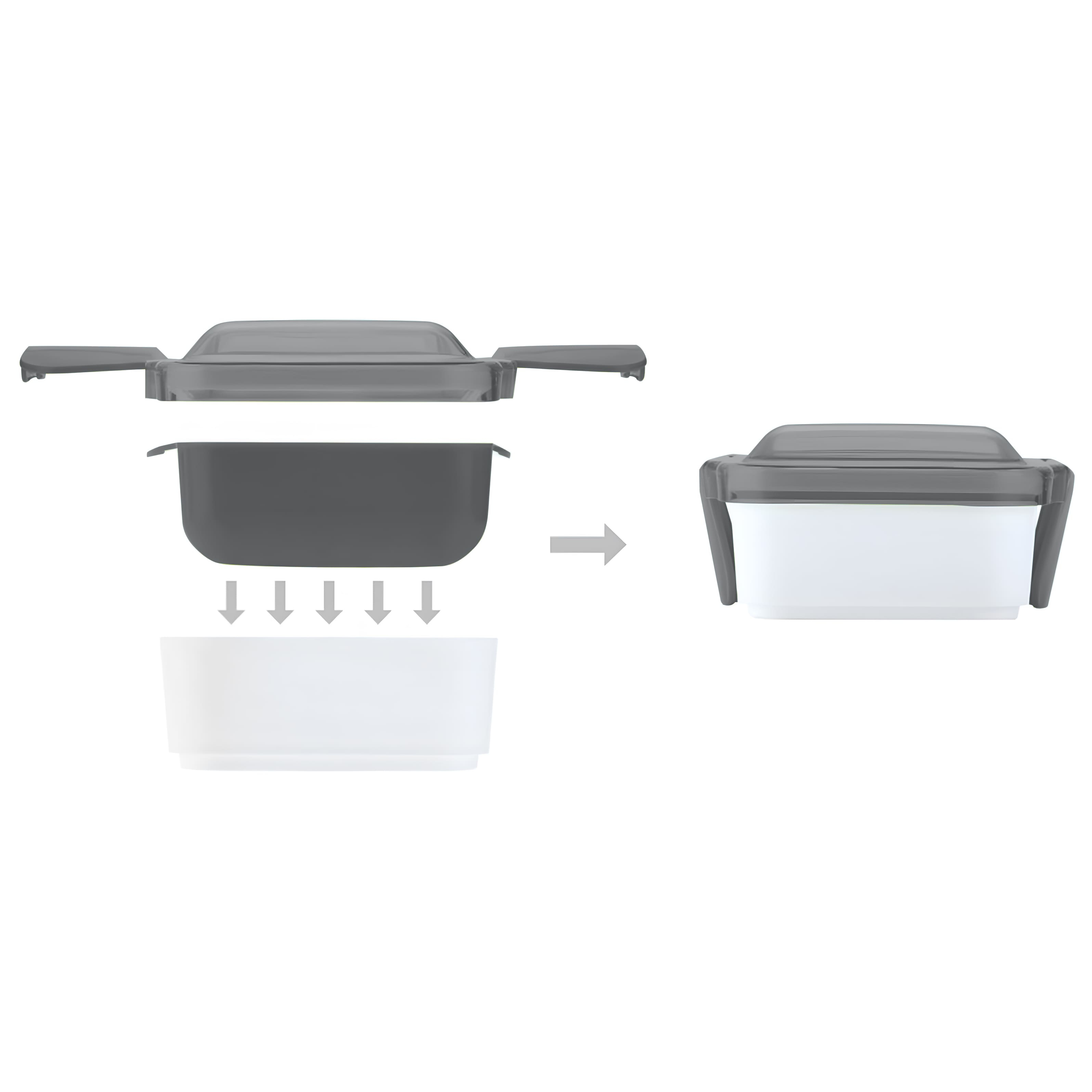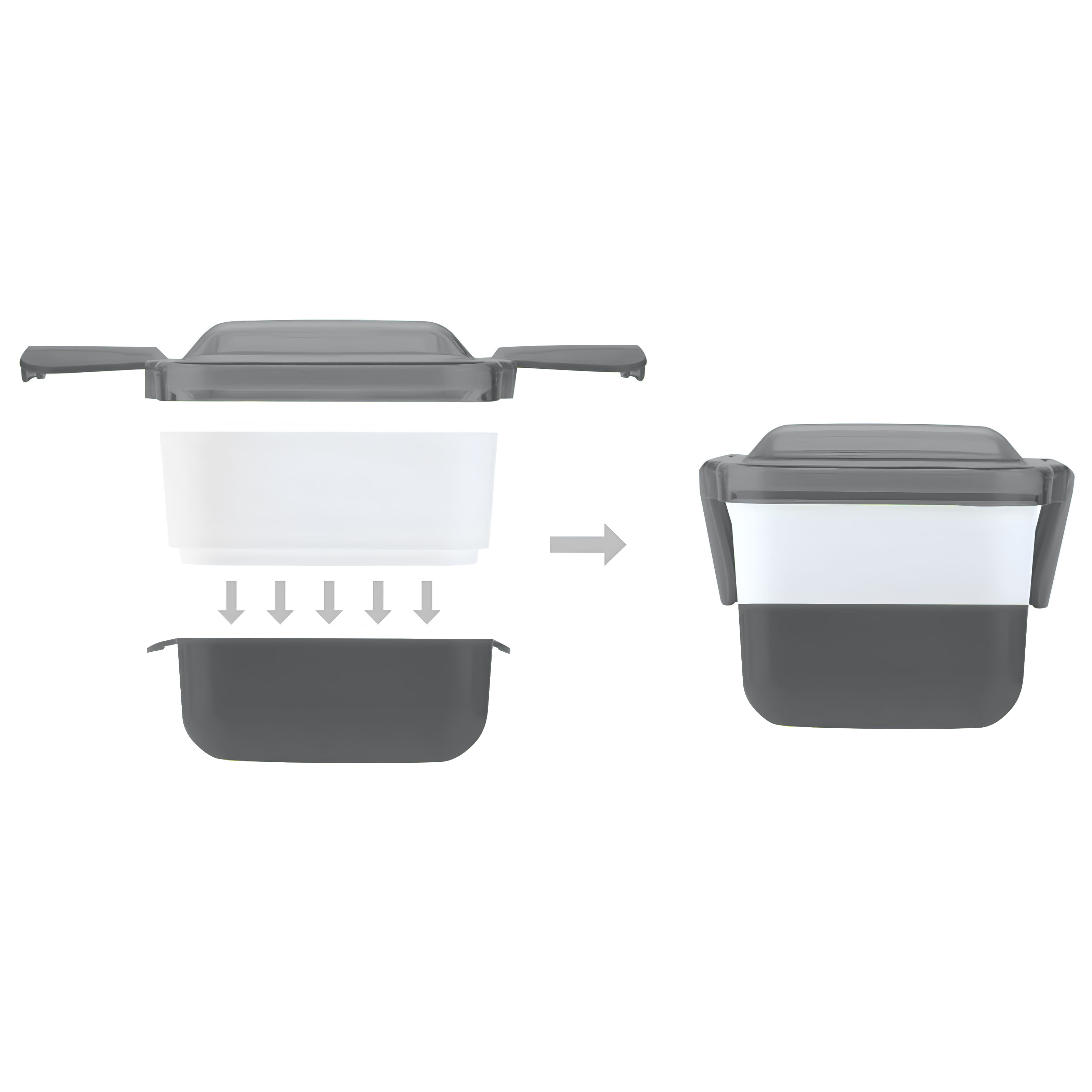 Зручний та стильний ланчбокс із щільною кришкою для збереження свіжості їжі. Матеріал: PP + AS. (Кришка з АС-пластику. Зовнішня частина з матеріалу PP. Безпечний харчовий пластик, стійкий до пошкоджень). Кришку не можна використовувати в мікрохвильовій печі. Об’єм: 950 мл. Подвійна конструкція – складається з двох окремих контейнерів що дозволяє розділяти страви. Щільна кришка з фіксатором (подвійні замки) – надійно закривається, запобігаючи протіканню. Компактний дизайн – зручно брати із собою на роботу, навчання чи пікнік. Ідеальний для щоденного використання.
