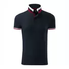 Матеріал: піке, 100% бавовна. Крій з бічними швами. Комір та рукави в’язані в рубчик 1:1. Нижня частина коміра і подолу рукавів з контрастними смугами. Планка на 2 ґудзиках кольору черепашка. Розрізи в бічних швах і нижня планка з контрастною стрічкою. Внутрішній виріз з контрастною стрічкою.