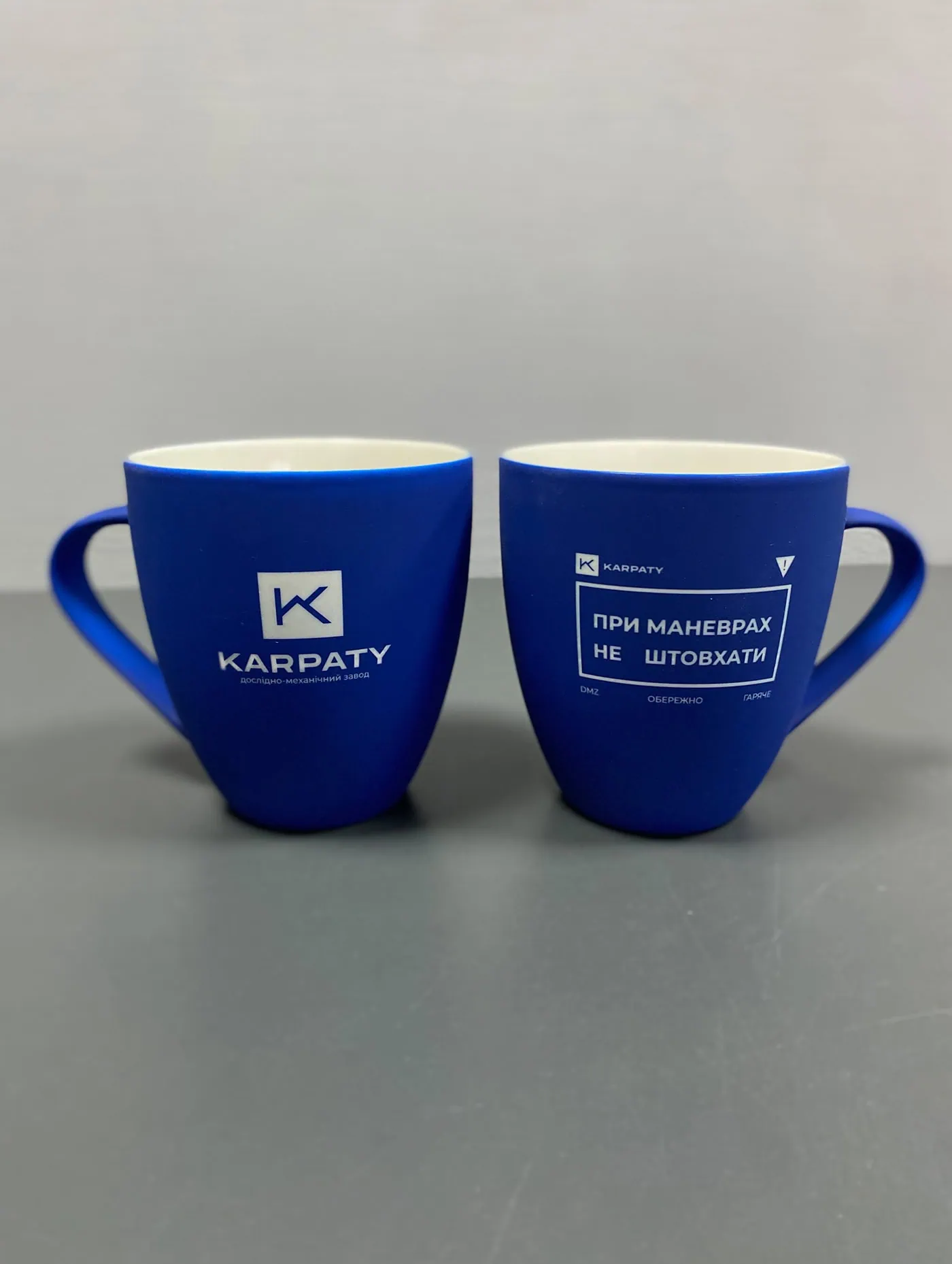 Горнятка с софт-тач покриттям у поєднанні з лазерним гравіюванням мають цікавий зовнішній вигляд та приємні на дотик. У наявності багато різних кольорів. Об'єм 320 мл.