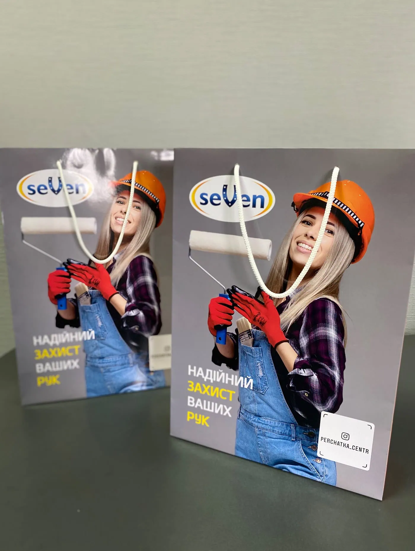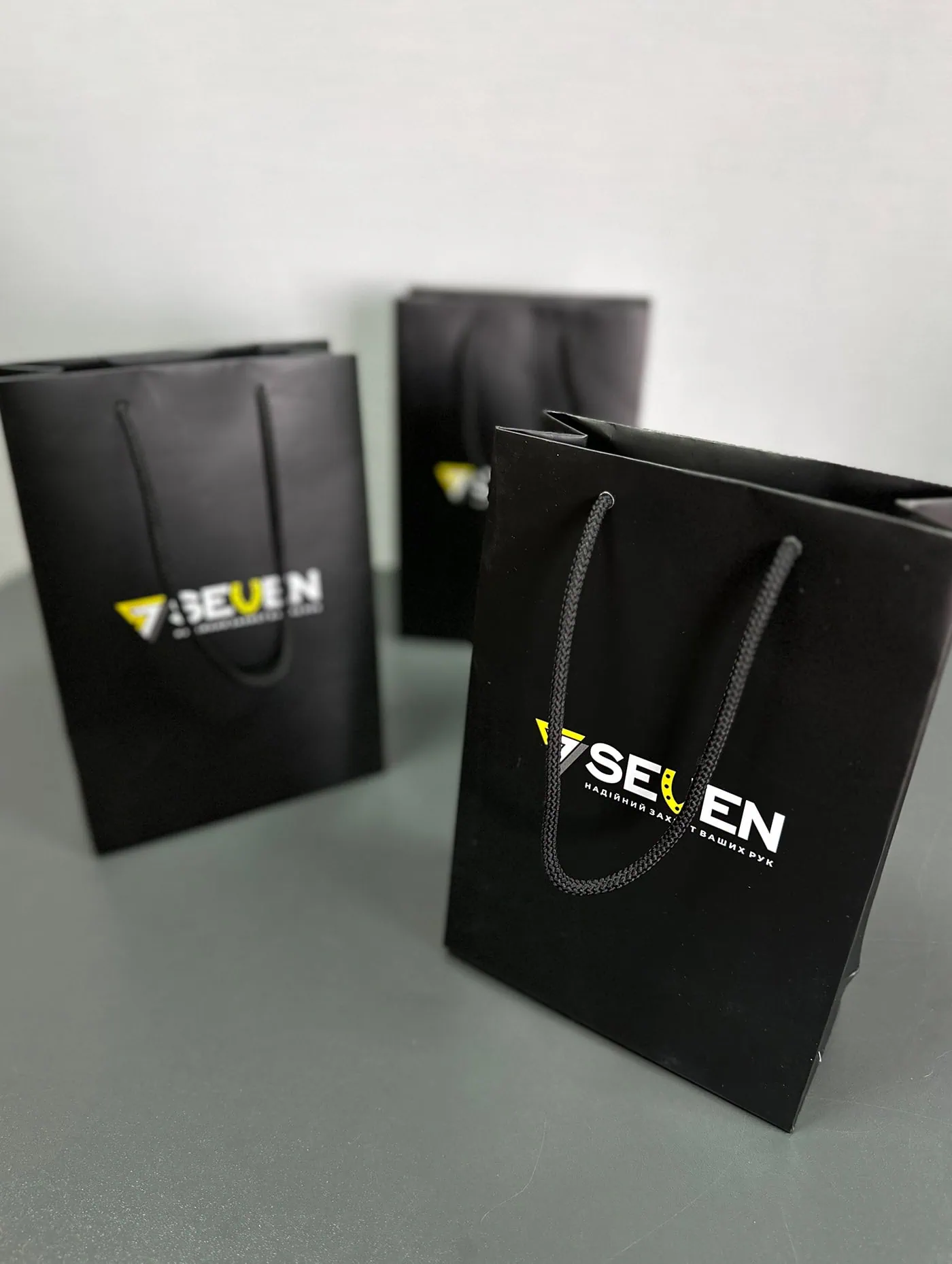 Також займаємся виготовленням паперових пакетів будь-якого розміру! На фотографіях приклад пакету розміром 150х65х220 мм з мелованного паперу 200 щільності, повнокольоровим друком та матовою ламінацією.