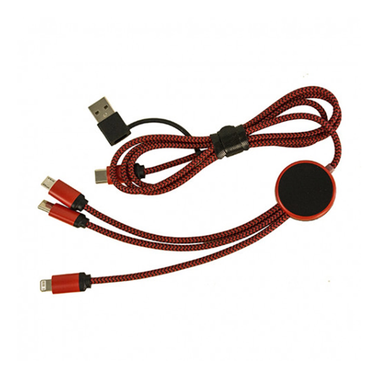 Міцне нейлонове обплетення червоного кольору (арт. P0115P1) гарантує довговічність, а підсвітка логотипу на круглій центральній частині надає індивідуального стилю — ідеально підходить для брендованої продукції та подарунків.