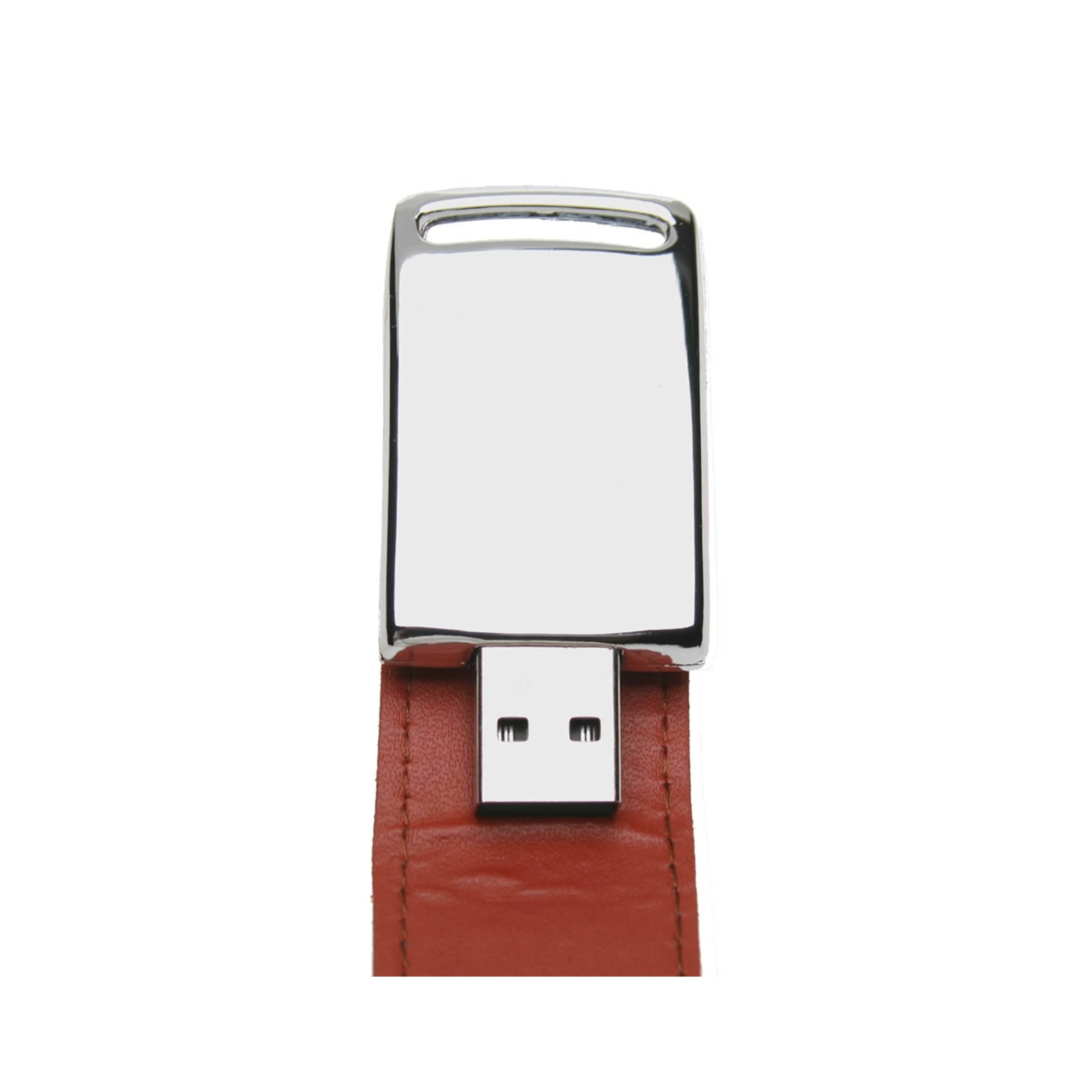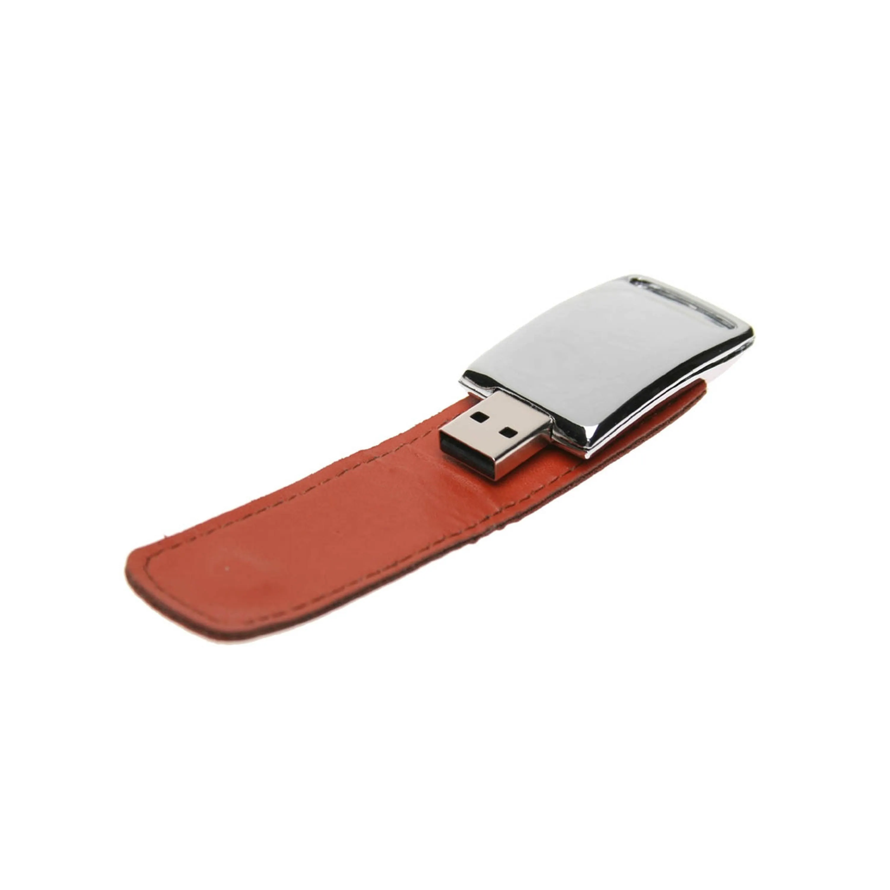 Флешка с глянцевым металлическим корпусом и кожаным чехлом. Интерфейс USB 2.0. Магнитная застежка защищает чип от повреждений и пыли.