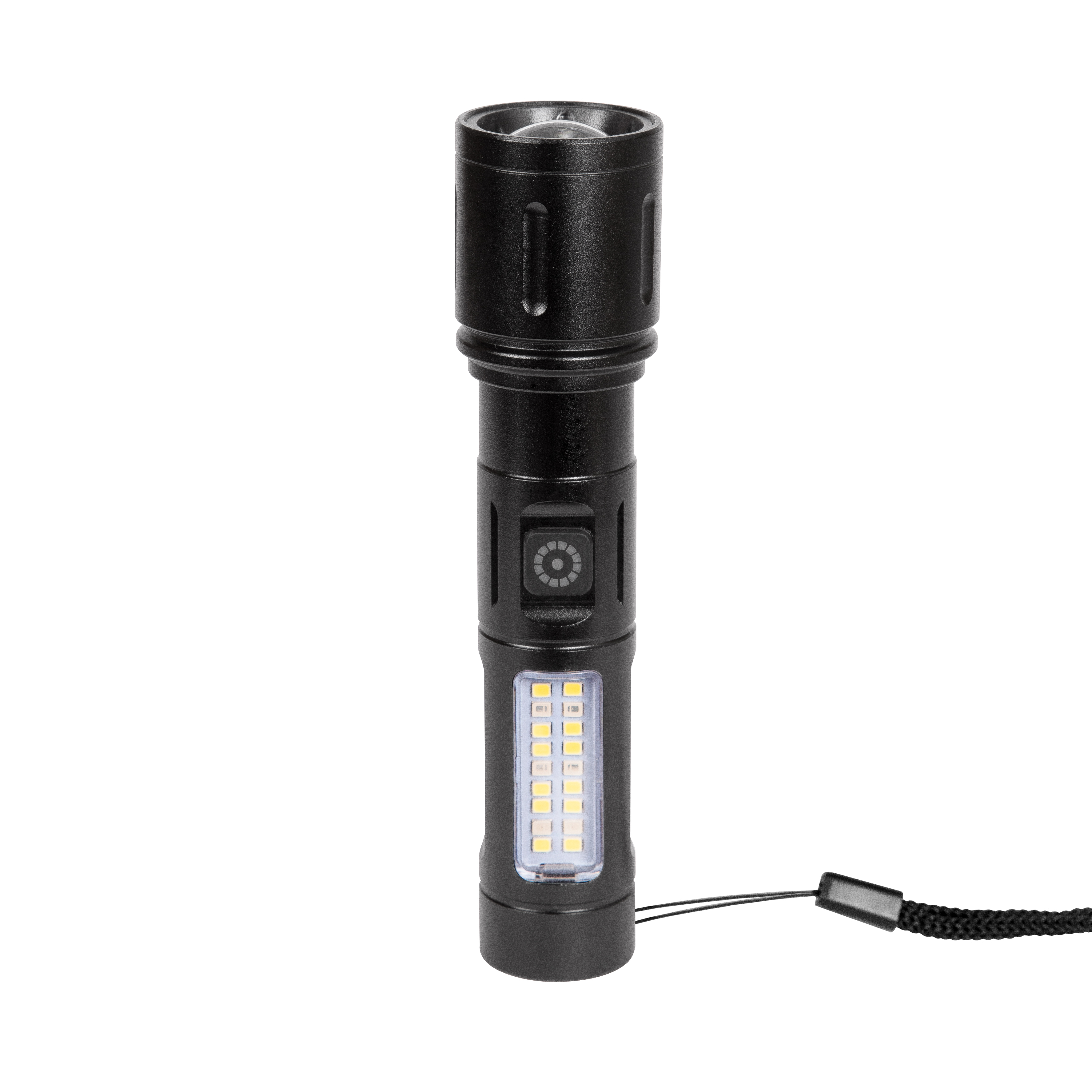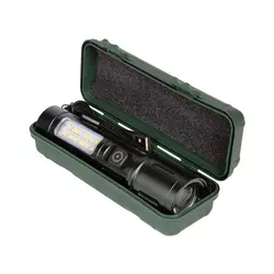 Светодиодный фонарик Asper энергетически безопасен для окружающей среды. Режимы: 6 (основной светодиод: 100%, 50%, стробоскоп, боковой SMD: белый, красный, красный стробоскоп, ВЫКЛ) Размер: головка диаметр 35 мм, ручка диаметр 28 мм, длина в закрытом состоянии 138 мм (открытом 155 мм) ПРЕДУПРЕЖДЕНИЕ: Не направляйте луч в глаза, так как это может повредить зрение. Держите прибор подальше от детей.