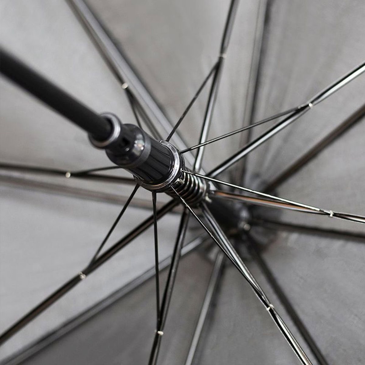 Парасоля-тростина обладнана міцною металевою основою чорного кольору, на якій тримаються спиці зі скловолокна (58,5 см х 8). Купол виготовлений з водонепроникної тканини епонж 190Т. Епонж має високі водовідштовхувальні властивості, вода збирається в краплі й стікає, залишаючи поверхню практично сухою.