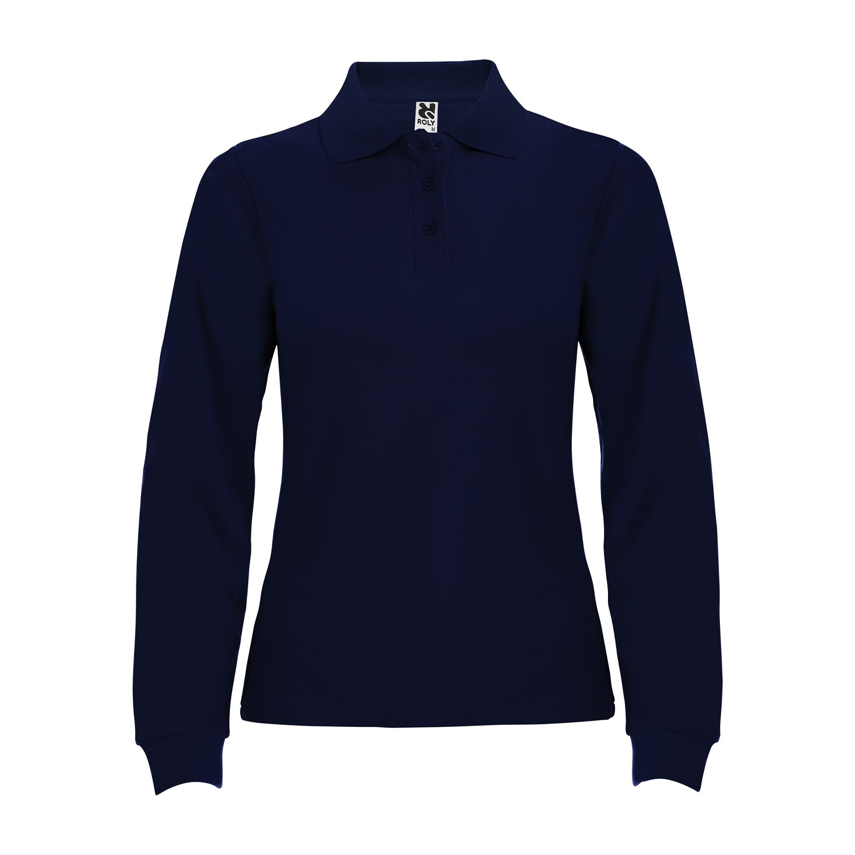 Поло женское с длинным рукавом Estrella с ребристым воротником и манжетами, планкой на 3 пуговицах и ребристыми манжетами из эластана. Усиленные закрытые швы на воротнике.