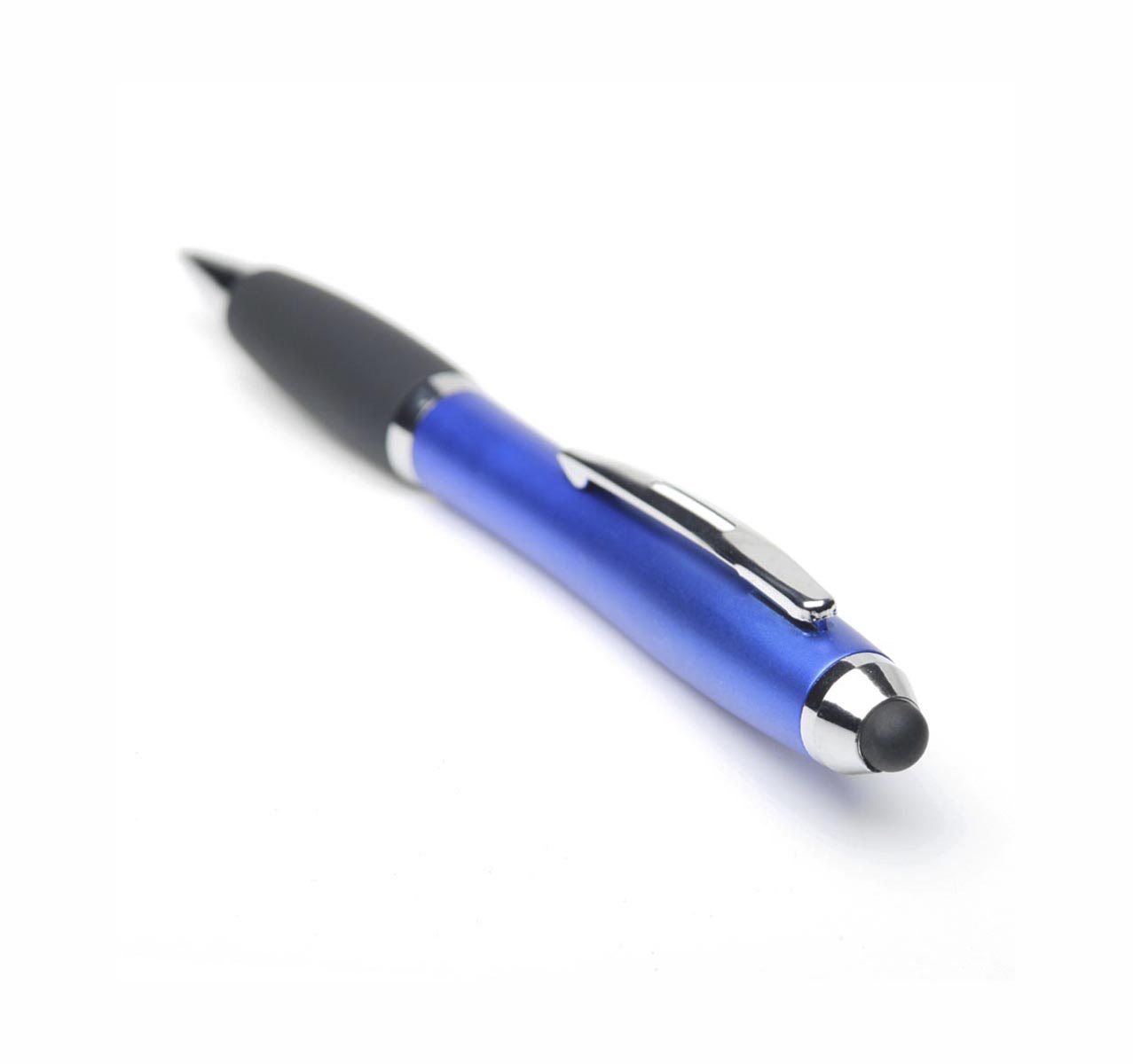 Многоразовая шариковая ручка-стилус с цветным пластиковым корпусом, прорезиненным грипом и металлическим зажимом. Ручка оснащена сенсорным наконечником для работы с сенсорным экраном. Материалы: ABS-пластик, металл, резина. Механизм - поворотный.