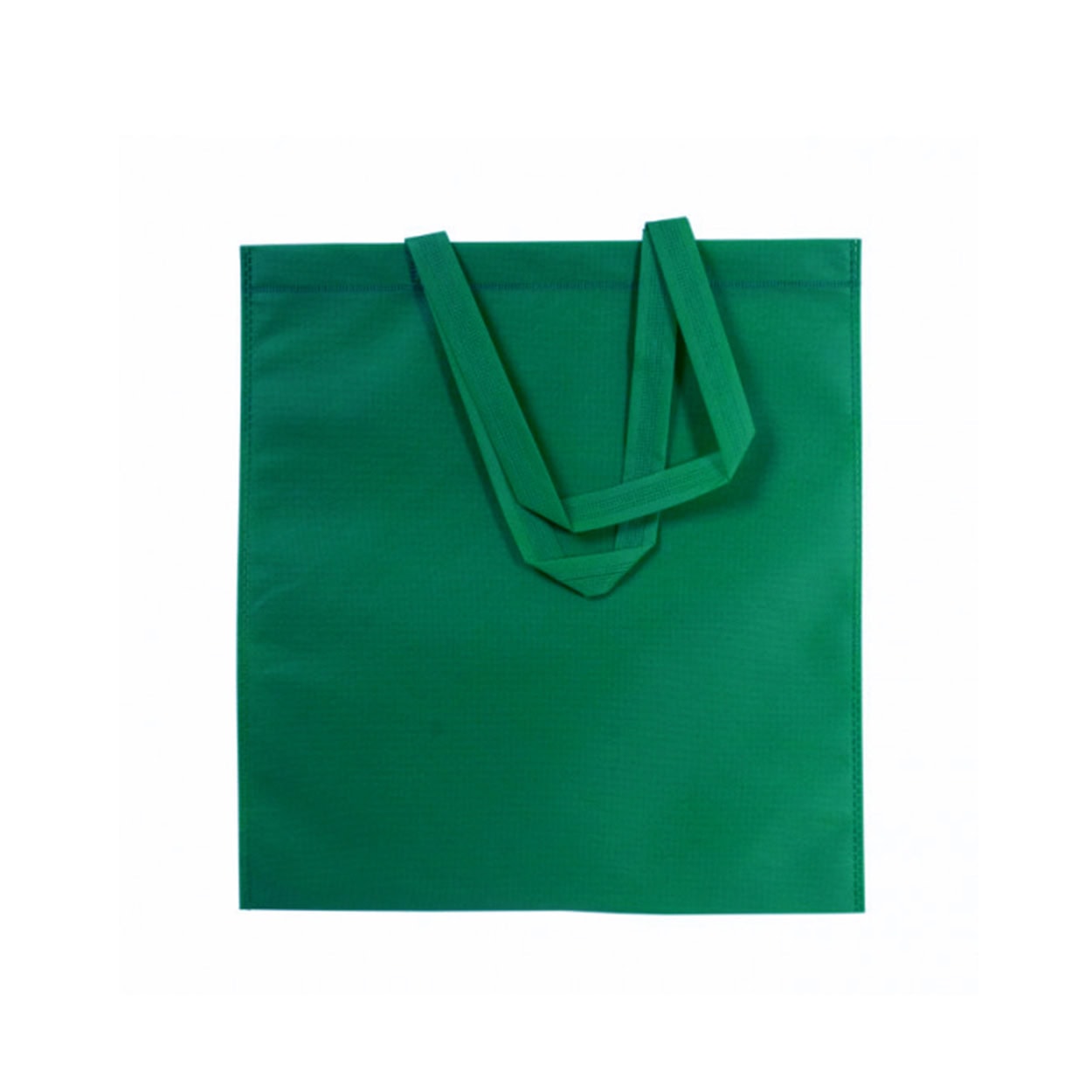 Удобная сумка многоразового использования из прочного нетканого материала с длинными ручками. Выдерживает вес до 18 кг и не пропускает влагу.