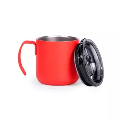 Термочашка из нержавеющей стали с двойными стойками, покрытая матовой цветной эмалью. Крышка прозрачная с клапаном. Крышку можно мыть в посудомоечной машине. Корпус мыть только вручную, чтобы не повредить цветное покрытие. Поддерживает горячий напиток в течение 6 часов. Высота 8,1 см без крышки, с крышкой 8,6 см, диаметр 8,6 см