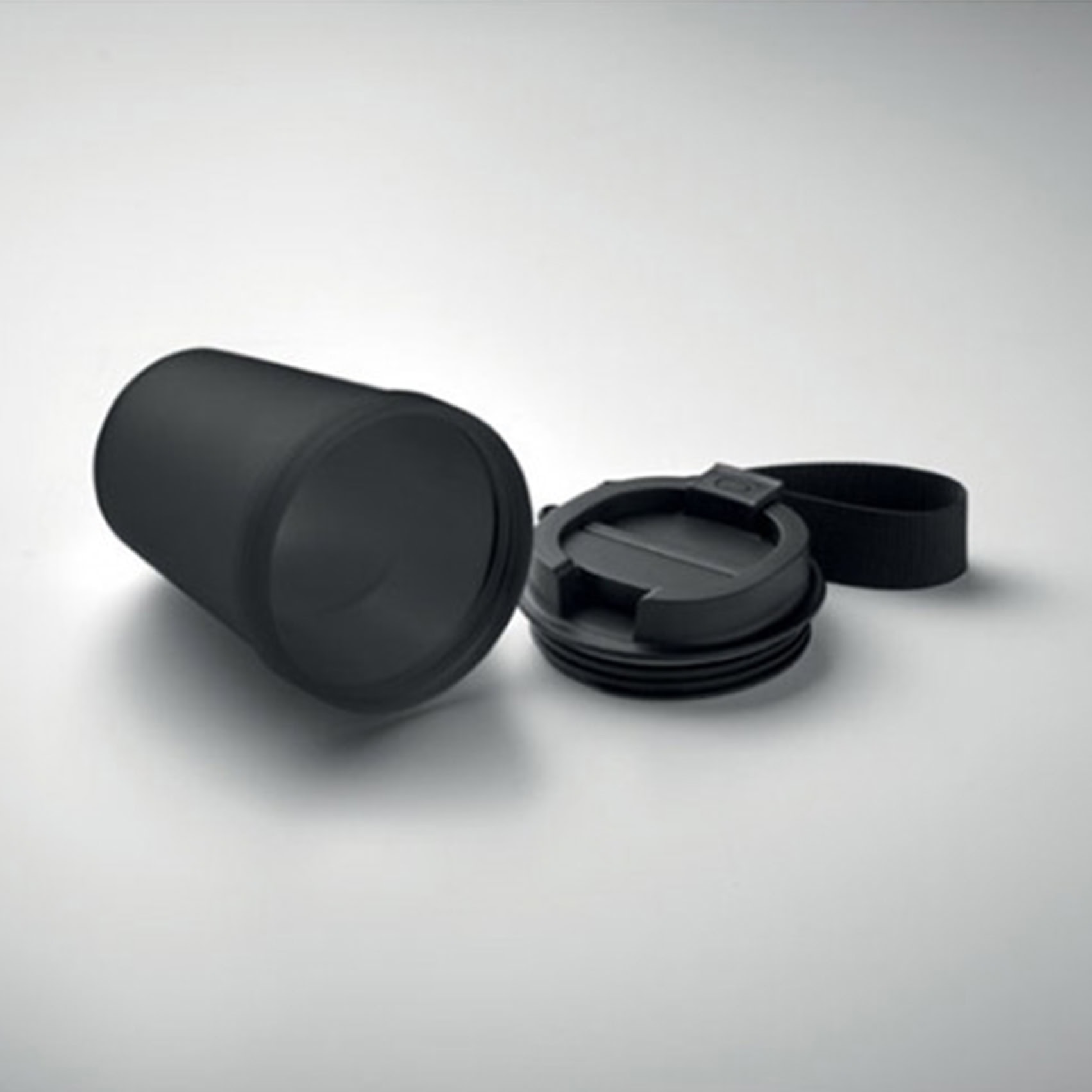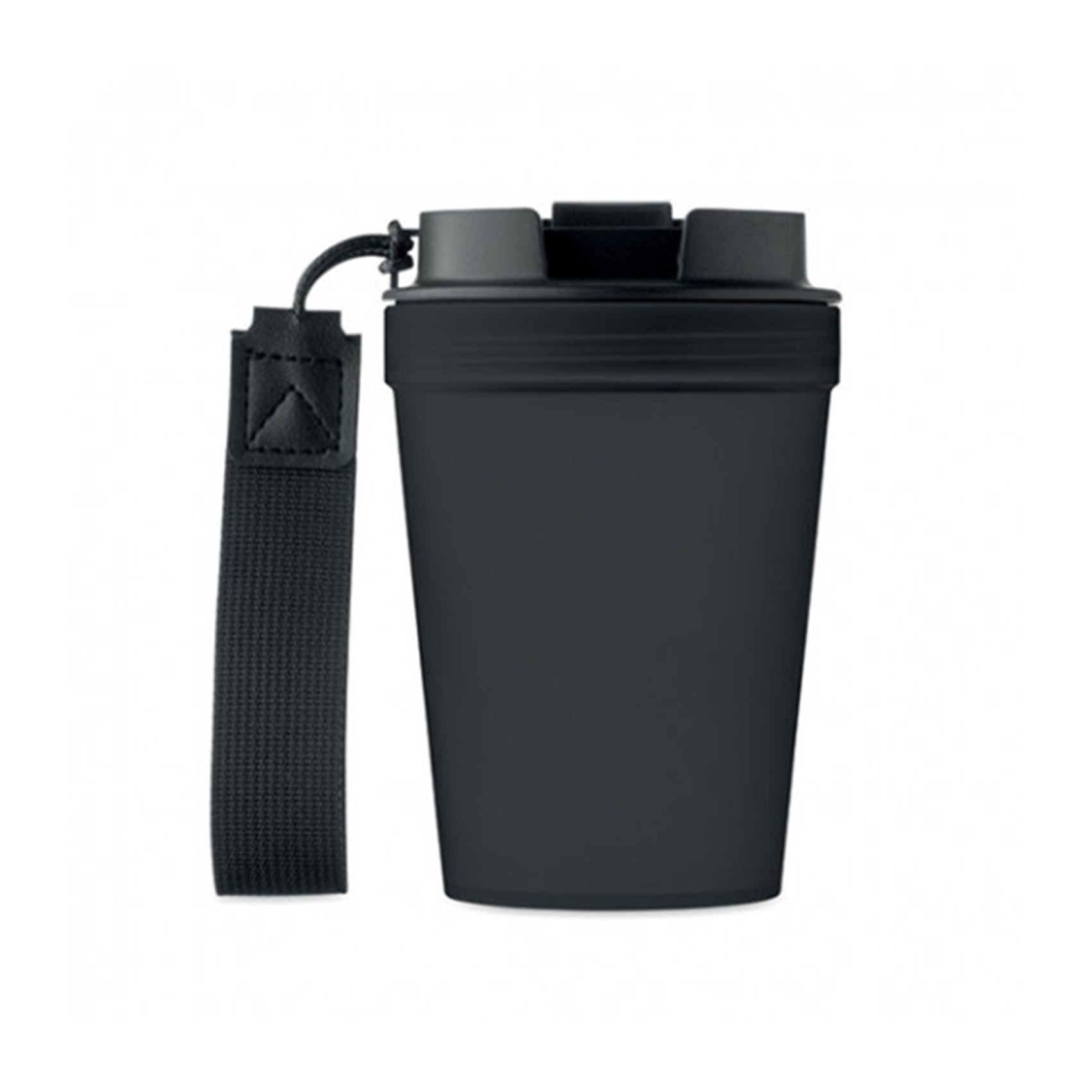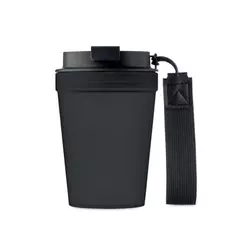 Термочашка с ремешком RPET на 300 мл - экологичная и практичная термочашка для ежедневного использования. Изготовлена из полипропилена (PP), содержащего до 50% переработанных материалов, и дополнена ремешком из переработанного полиэстера RPET для удобной переноски. Герметичная крышка предотвращает протекание, поэтому чашку удобно брать в путешествие, в офис или на прогулку. Объем 300 мл идеально подходит для кофе, чая или других напитков. Обратите внимание: это чашка с одинарными стенками, поэтому тепло от напитка может передаваться на поверхность изделия.