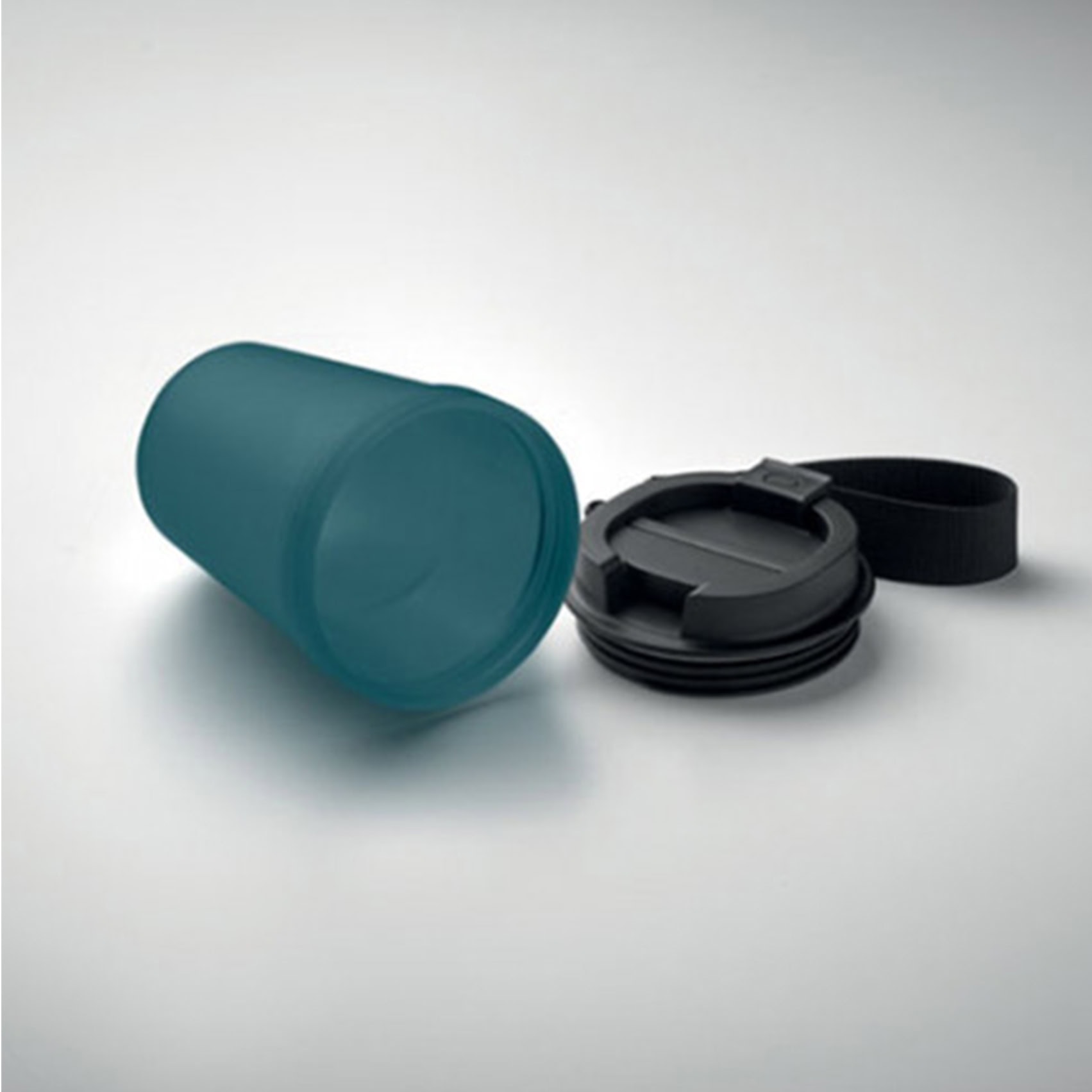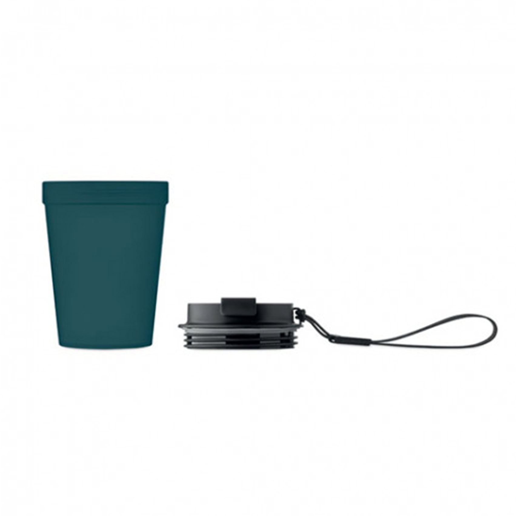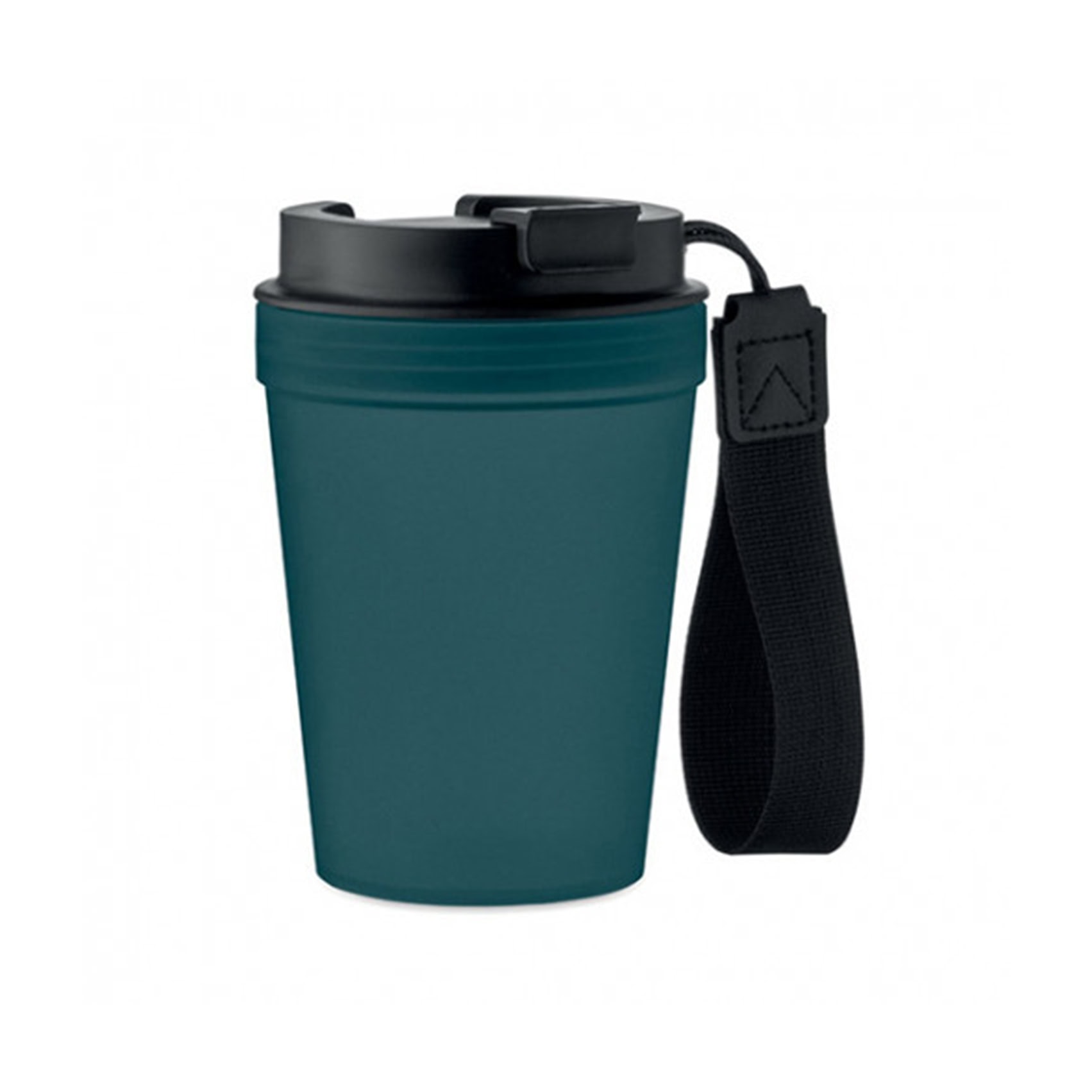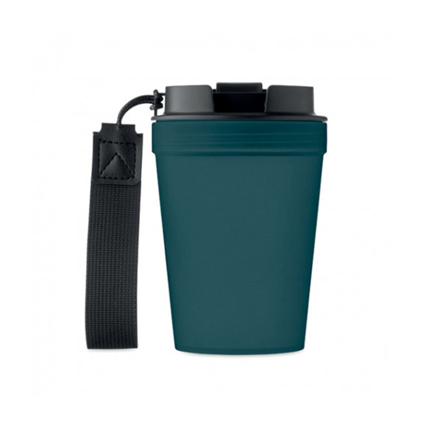 Термочашка с ремешком RPET на 300 мл - экологичная и практичная термочашка для ежедневного использования. Изготовлена из полипропилена (PP), содержащего до 50% переработанных материалов, и дополнена ремешком из переработанного полиэстера RPET для удобной переноски. Герметичная крышка предотвращает протекание, поэтому чашку удобно брать в путешествие, в офис или на прогулку. Объем 300 мл идеально подходит для кофе, чая или других напитков. Обратите внимание: это чашка с одинарными стенками, поэтому тепло от напитка может передаваться на поверхность изделия.