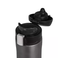 Термокружка из нержавеющей стали, крышка герметична с блокировкой. Поддерживает температуру не менее 12 часов.