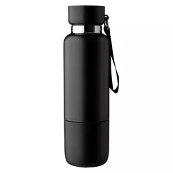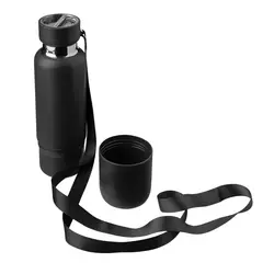 Термобутылка со съемной чашкой, с двойной стенкой из нержавеющей стали. Имеет в комплекте короткий и длинный ремешок для переноски