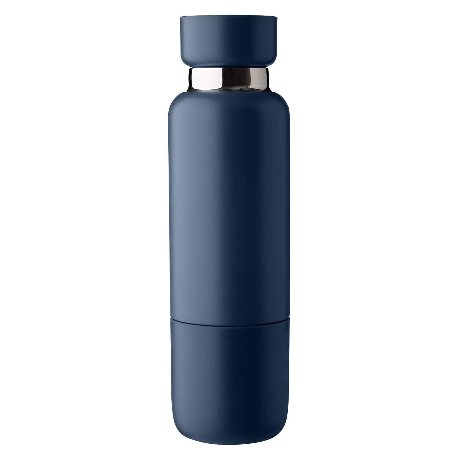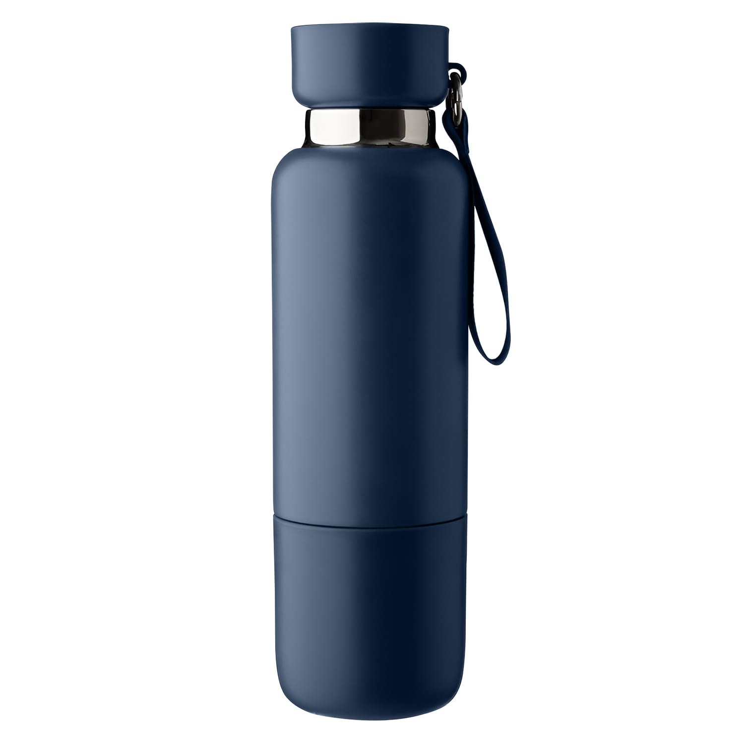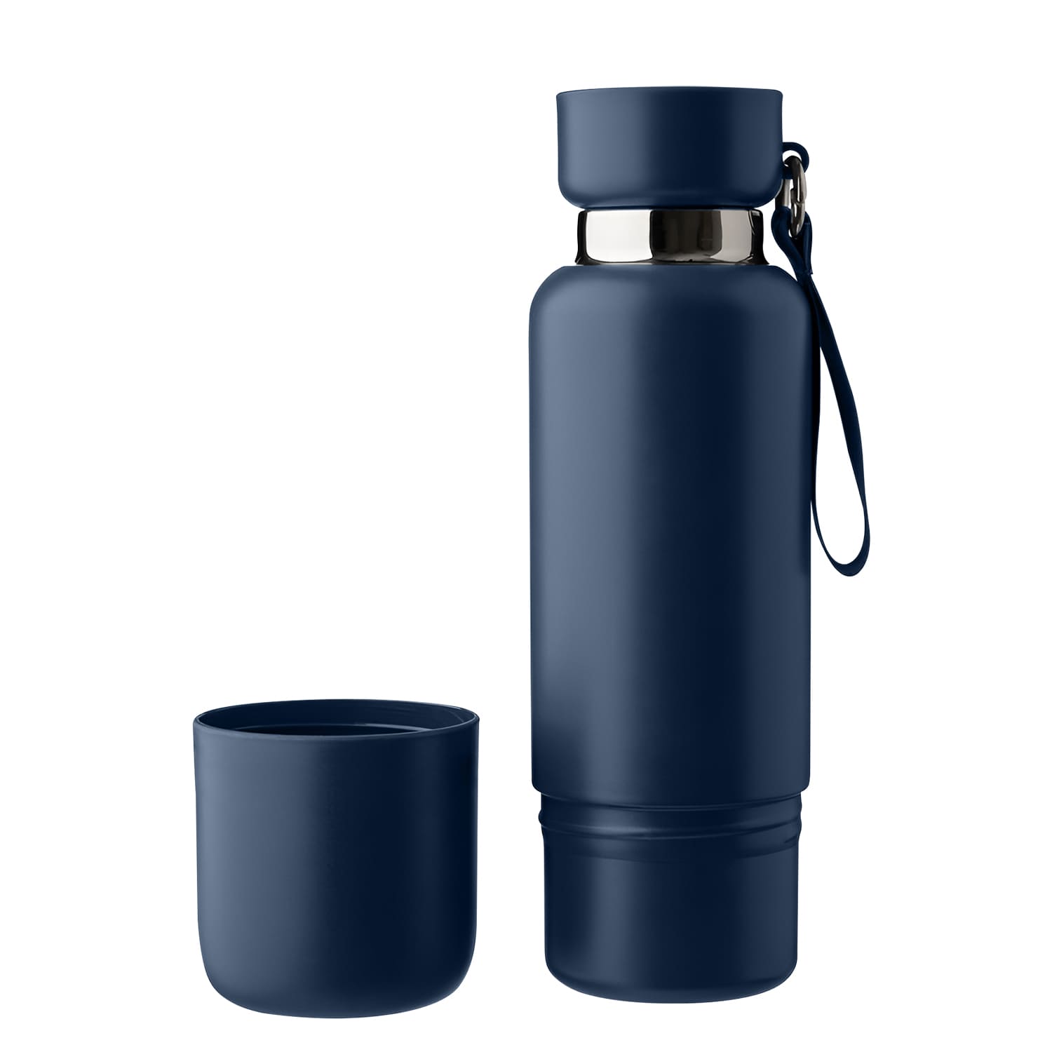 Термобутылка со съемной чашкой, с двойной стенкой из нержавеющей стали. Имеет в комплекте короткий и длинный ремешок для переноски