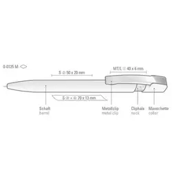 Рекламна ручка UMA Sky M поєднує в собі досконалість форми, кольору і високу якість складових елементів. Вона оснащена високоякісним стрижнем зі срібним наконечником і вольфрамово-карбідною кулькою (1,0 мм). Довжина письма: приблизно 4 000 м. Німецька якість гарантує приємне та м'яке відчуття під час писання.
