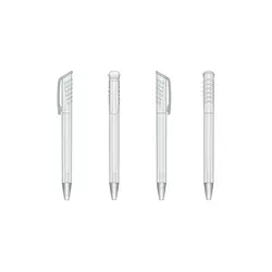 Пластикова багаторазова кулькова ручка високої якості. Велике поле для друку на корпусі та кліпі. Носик сріблястого кольору. Виготовлена зі спеціального пластику, що дозволяє зберегти логотип довше звичайних ручок. Змінний стержень типу "Budget", довжина лінії не менше 1200 м. Механізм - поворотний. Базовий колір пасти - синій. При виробництві під замовлення можливе встановлення стержня з чорною пастою.