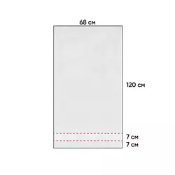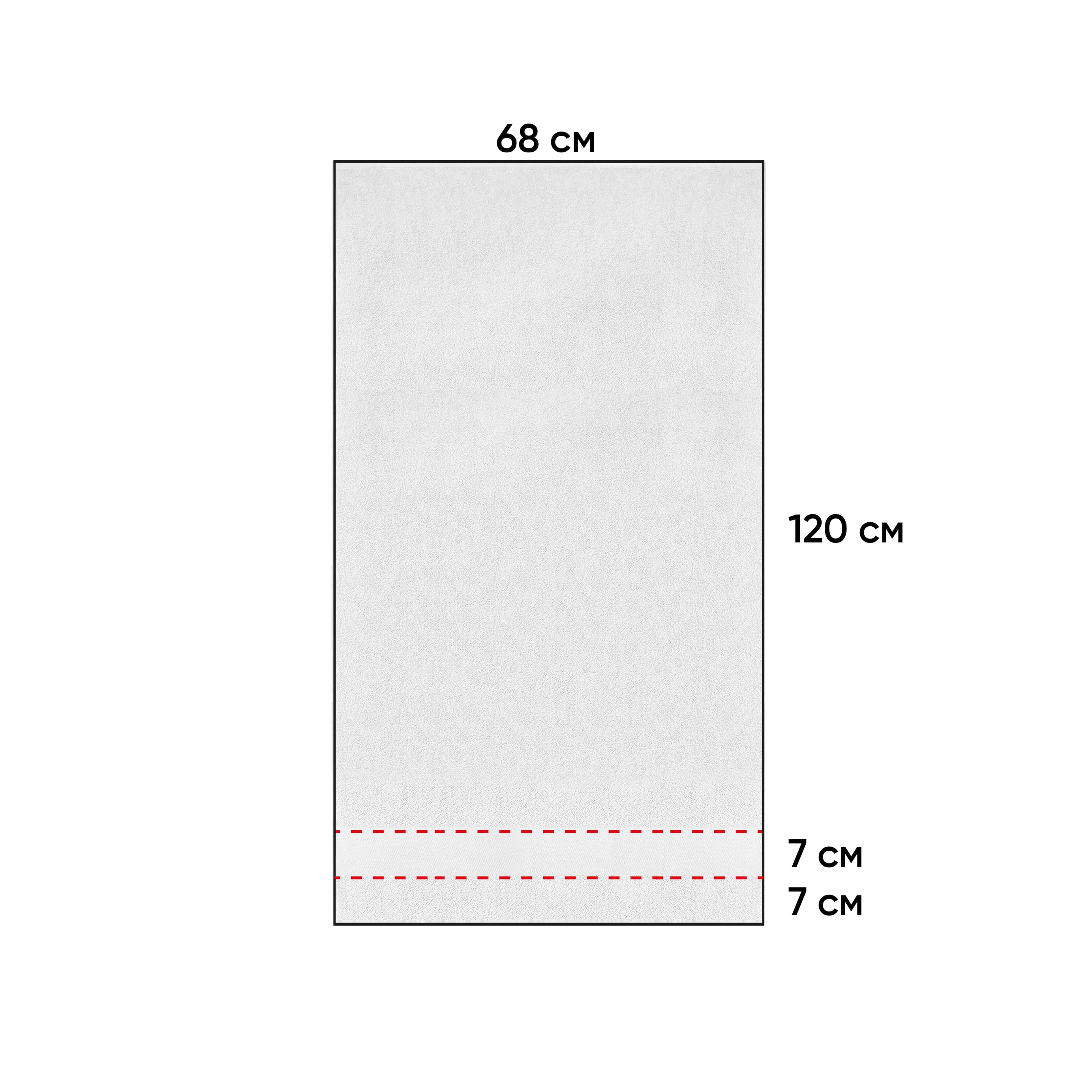 Рушник 100% бавовна, щільність 440 г/м2., розмір 120 x 68 см. Індивідуальна упаковка - поліетиленовий пакет. Подвійна стрічка на загибі, функціональна петля. По одному краю рушника є гладкий бордюр для нанесення логотипу, ширина бордюра 7 см. Рекомендована температура прання 40 градусів