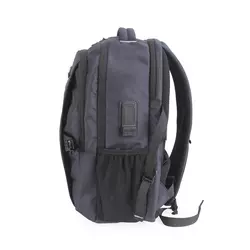Рюкзак з окремим відділенням для ноутбука 15,6”. Тканина водонепроникний 100% поліестер, має USB + Audio Port, по бокам дві зручні кишені для пляшки з фіксуючим ремінцем або інших речей, багато великих вітділів та різні кармани органайзери, прихована кишеня на задній спинці та ремінь для валізи. Розмір 44Х31Х13. Нанесення шовкодрук, термоперенос.