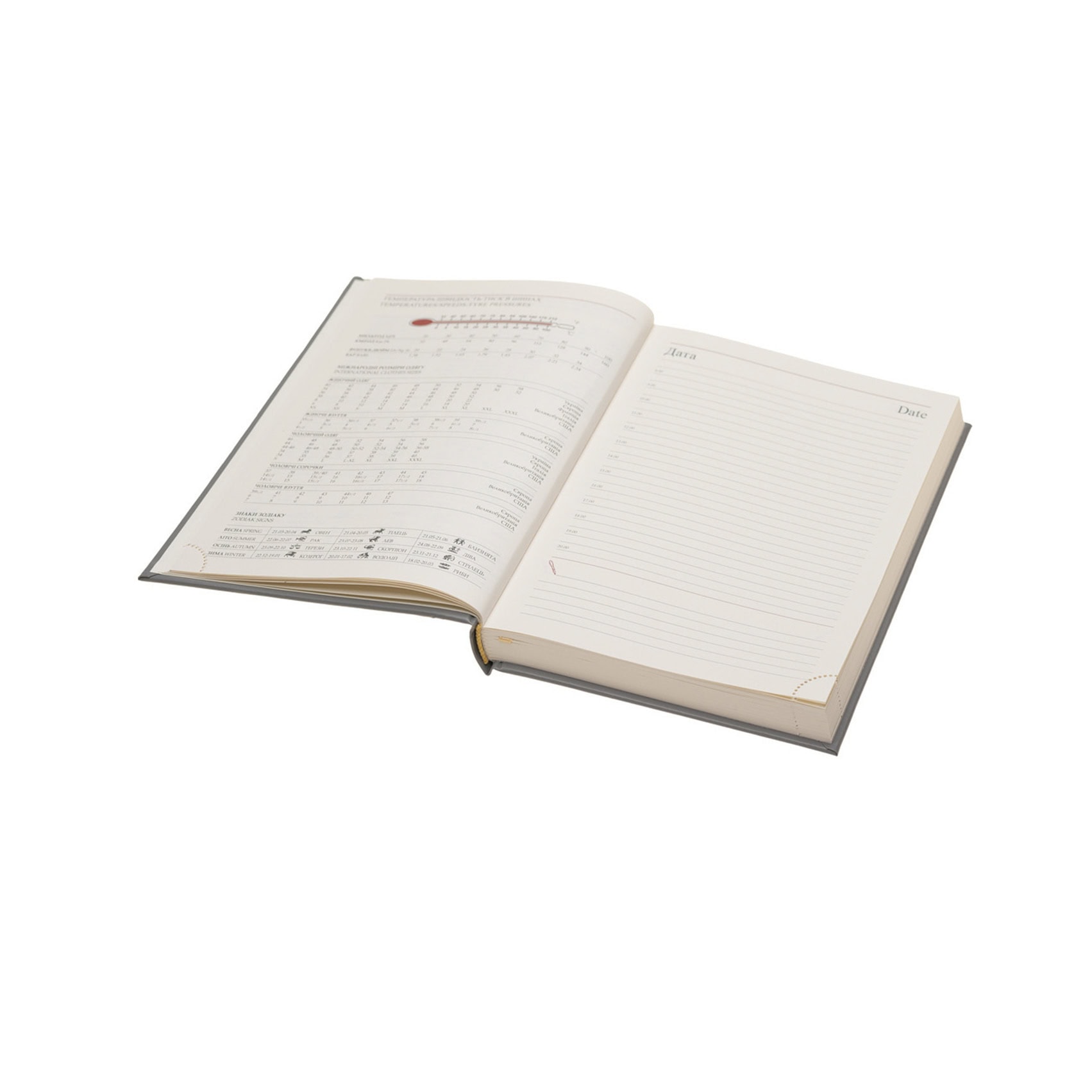 Недатований щоденник. Формат А5 (145 x 205 мм). Папір сертифікований FSC. Тверда обкладинка з високоякісного італійського шкрізаму.