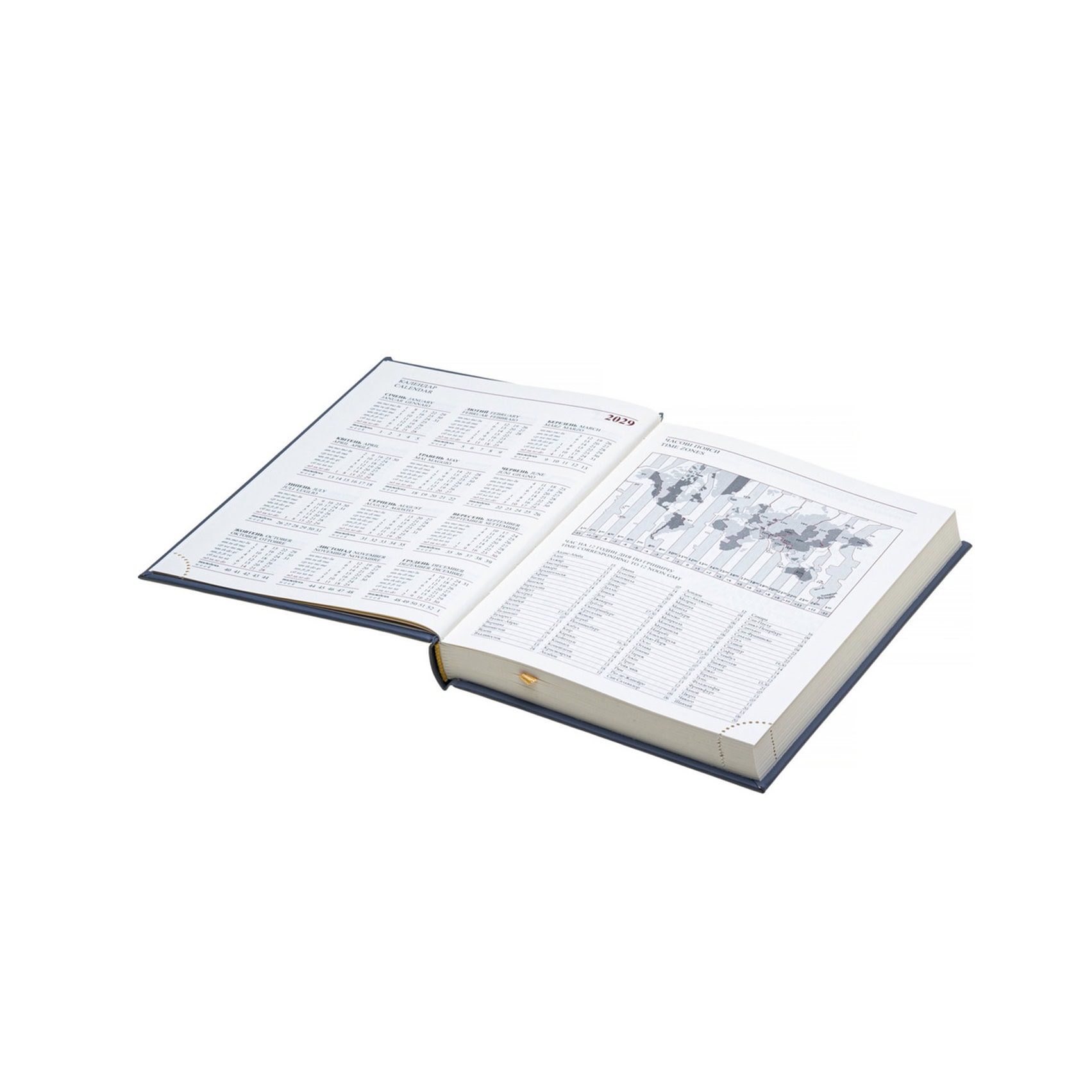 Містить: інфо. блоки, щоденник, блокнот витрат, телефонну книгу, карти Європи та України. Мови: укр., англ., нім., італ. Друк: двоколірний.