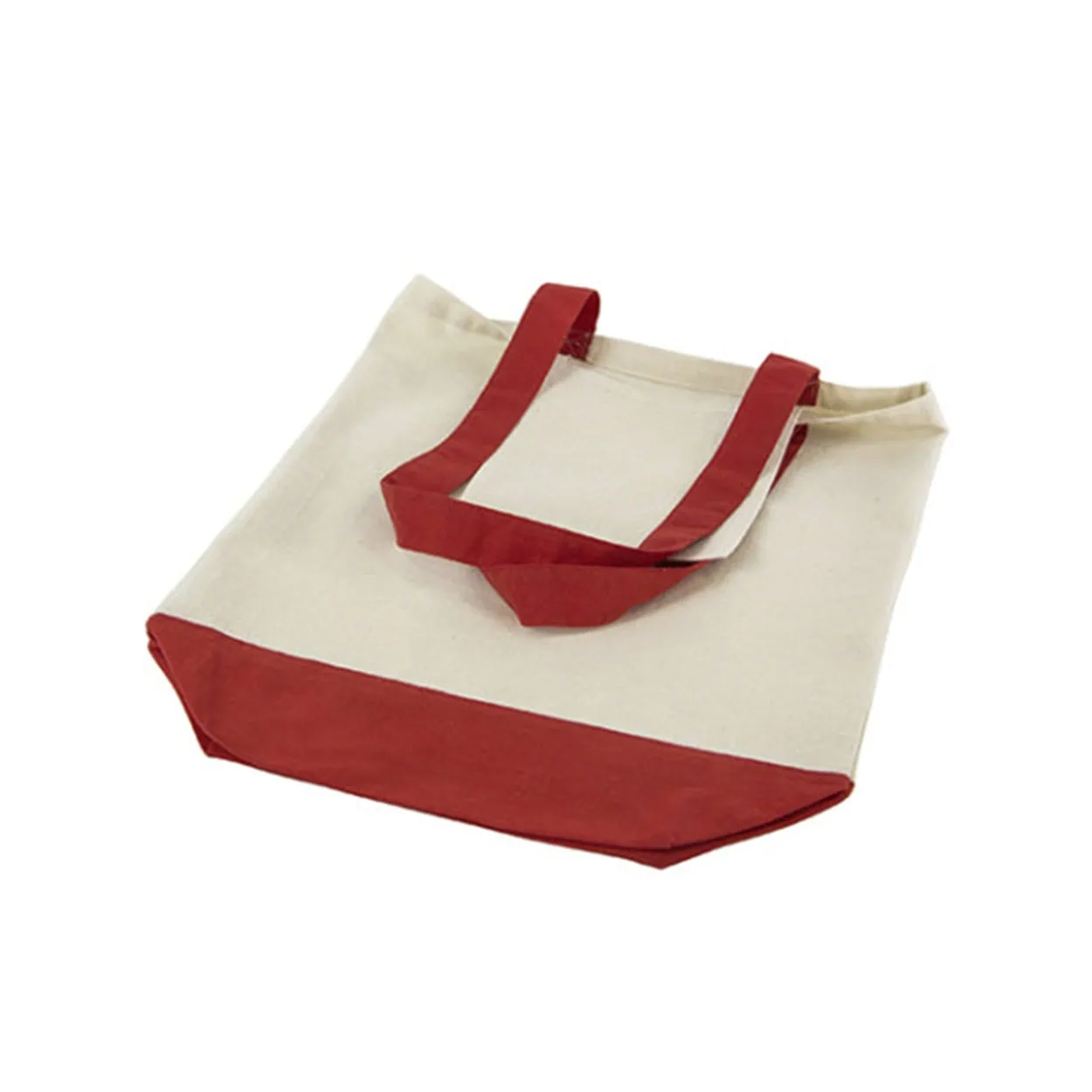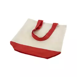 Полотняна пляжна сумка 170 г/м² з кольоровими ручками та деталями по низу. Сумка має одне відділення, широке дно, а всередині є додаткова кишеня для телефону або дрібниць.