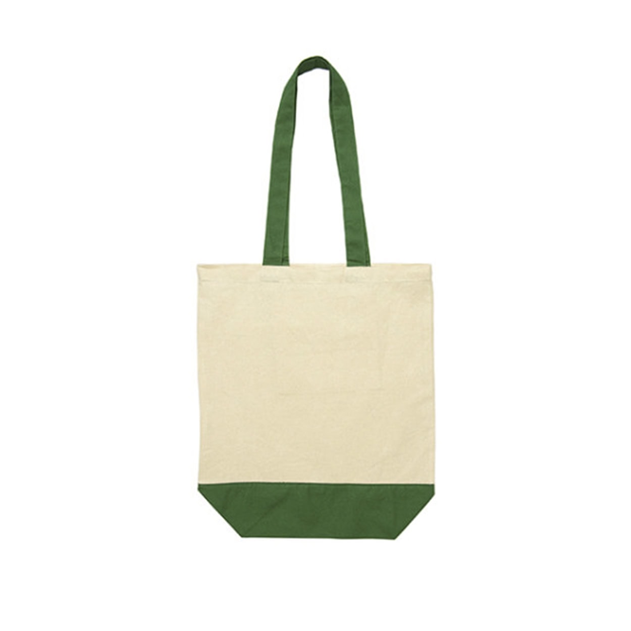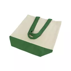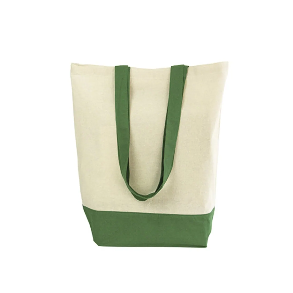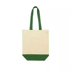 Полотняна пляжна сумка 170 г/м² з кольоровими ручками та деталями по низу. Сумка має одне відділення, широке дно, а всередині є додаткова кишеня для телефону або дрібниць.