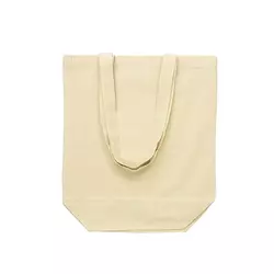Полотняна пляжна сумка 170 г/м² з кольоровими ручками та деталями по низу. Сумка має одне відділення, широке дно, а всередині є додаткова кишеня для телефону або дрібниць.