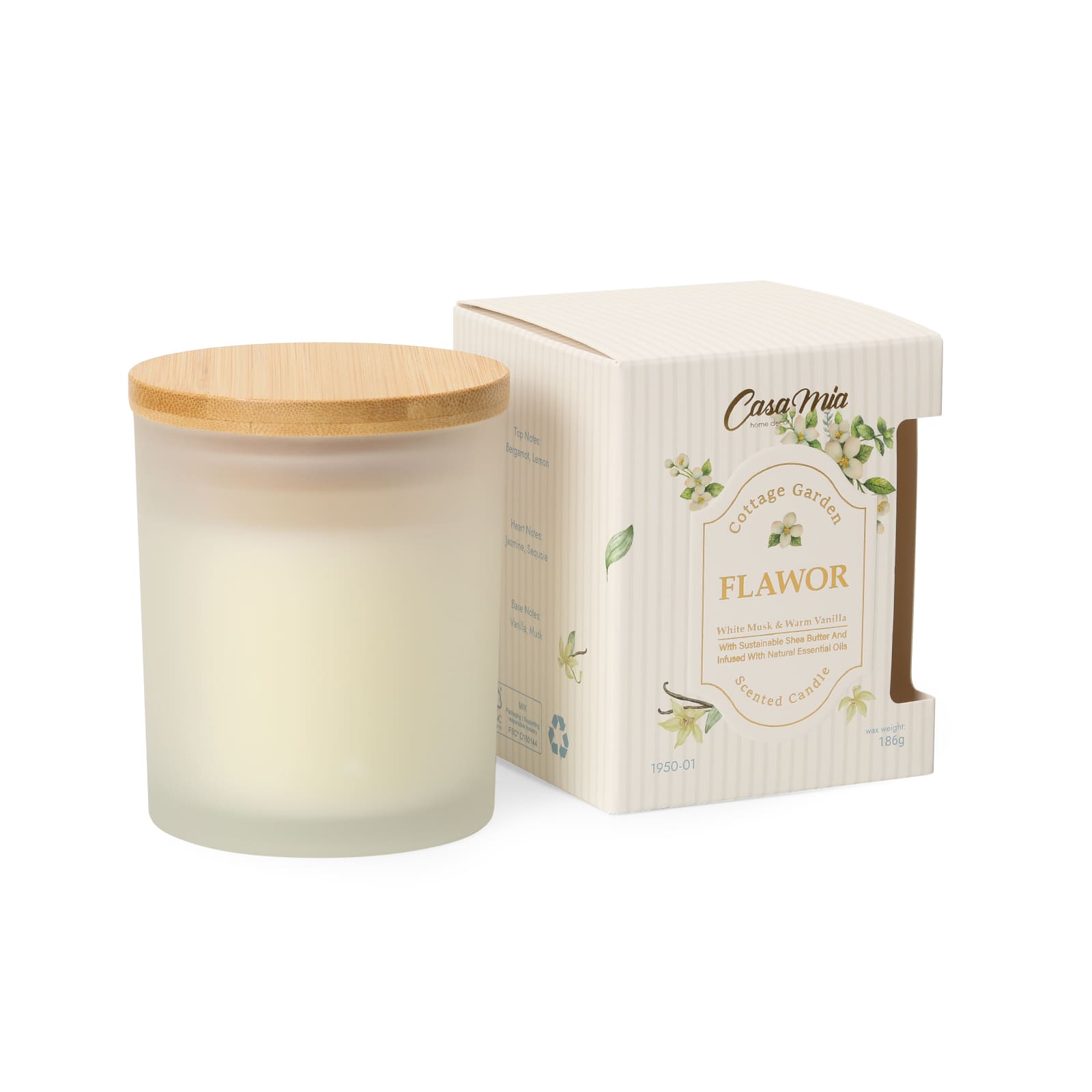 Свічка ароматична Flawor з натуральними ефірними оліями Об'єм воску: 186 г Матеріал: скло, дерево, парафін.