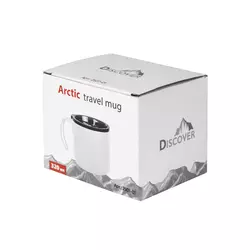 Термочашка з нержавіючої сталі з подвійними стійками, вкрита матовою кольоровою емаллю. Кришка прозора з клапаном. Кришку можна мити в посудомийній машині. Корпус мити тільки вручну, щоб не пошкодити кольорове покриття. Підтримує напій гарячим протягом 6 годин. Висота 8,1 см без кришки, з кришкою 8,6 см, діаметр 8,6 см