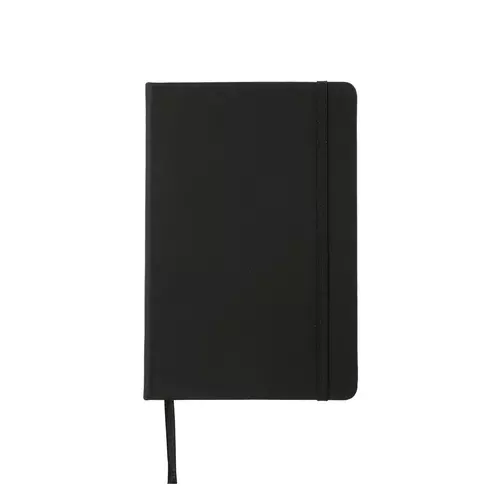 Записна книжка формату А5 з резинкою та закладкою. Тверда кольорова обкладинка виготовлена зі штучної шкіри на основі поліуретану.
