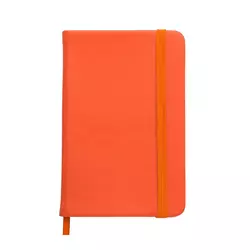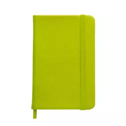 Записна книжка формату А6 з резинкою та закладкою. Тверда кольорова обкладинка виготовлена зі штучної шкіри на основі поліуретану.