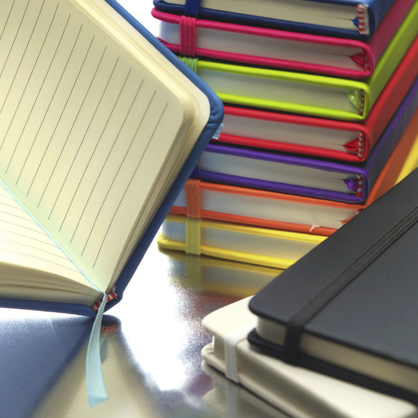 Записна книжка формату А6 з резинкою та закладкою. Тверда кольорова обкладинка виготовлена зі штучної шкіри на основі поліуретану.