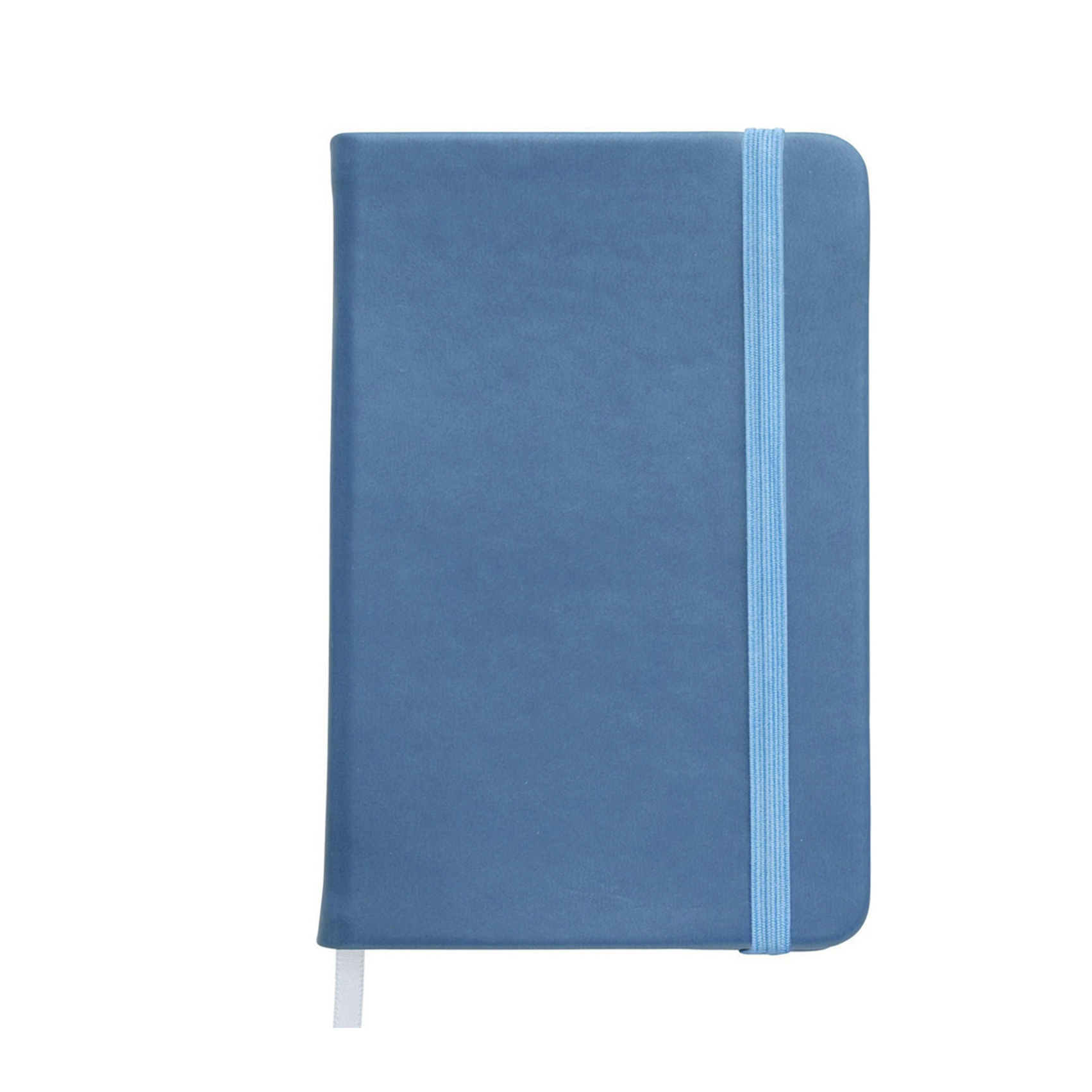 Записна книжка формату А6 з резинкою та закладкою. Тверда кольорова обкладинка виготовлена зі штучної шкіри на основі поліуретану.