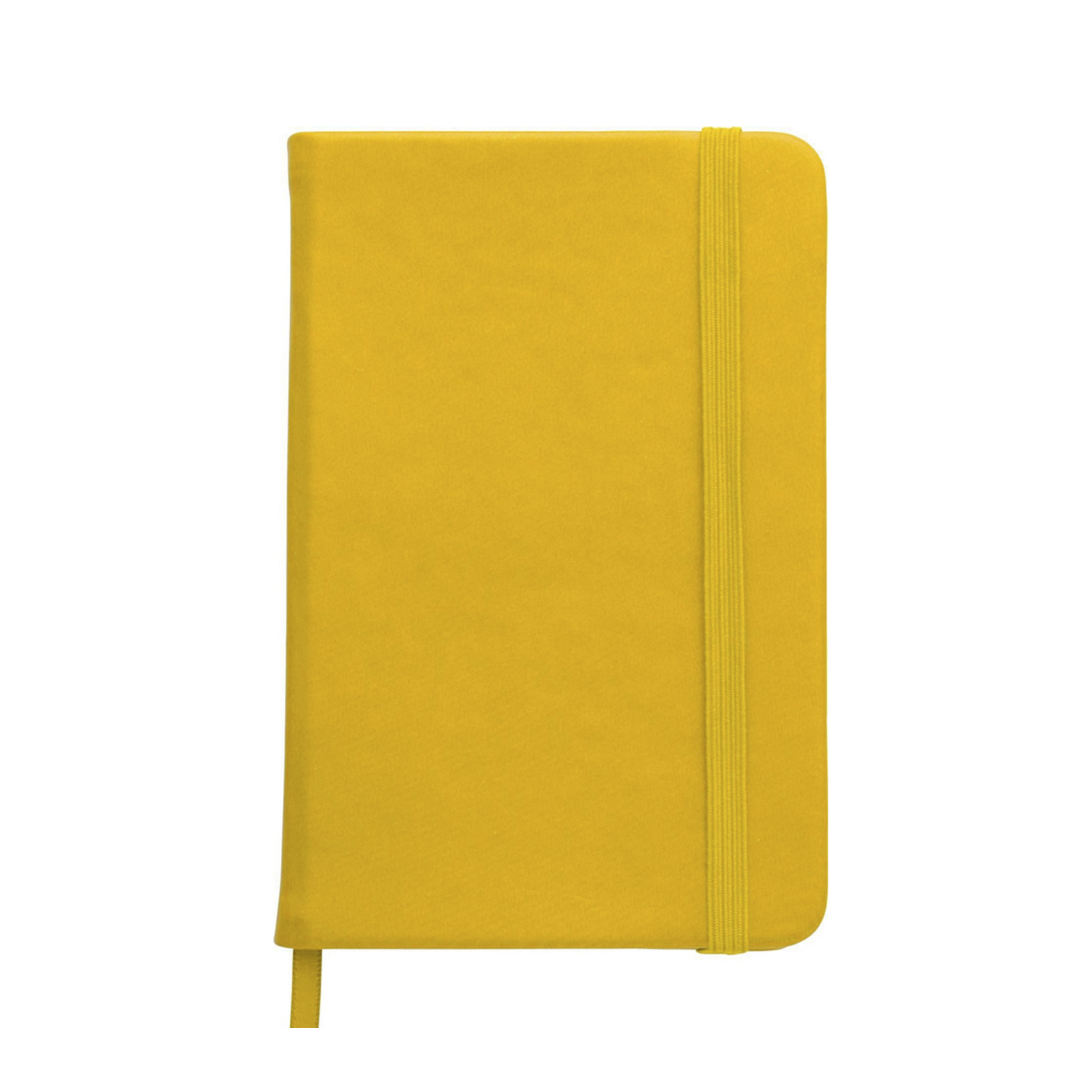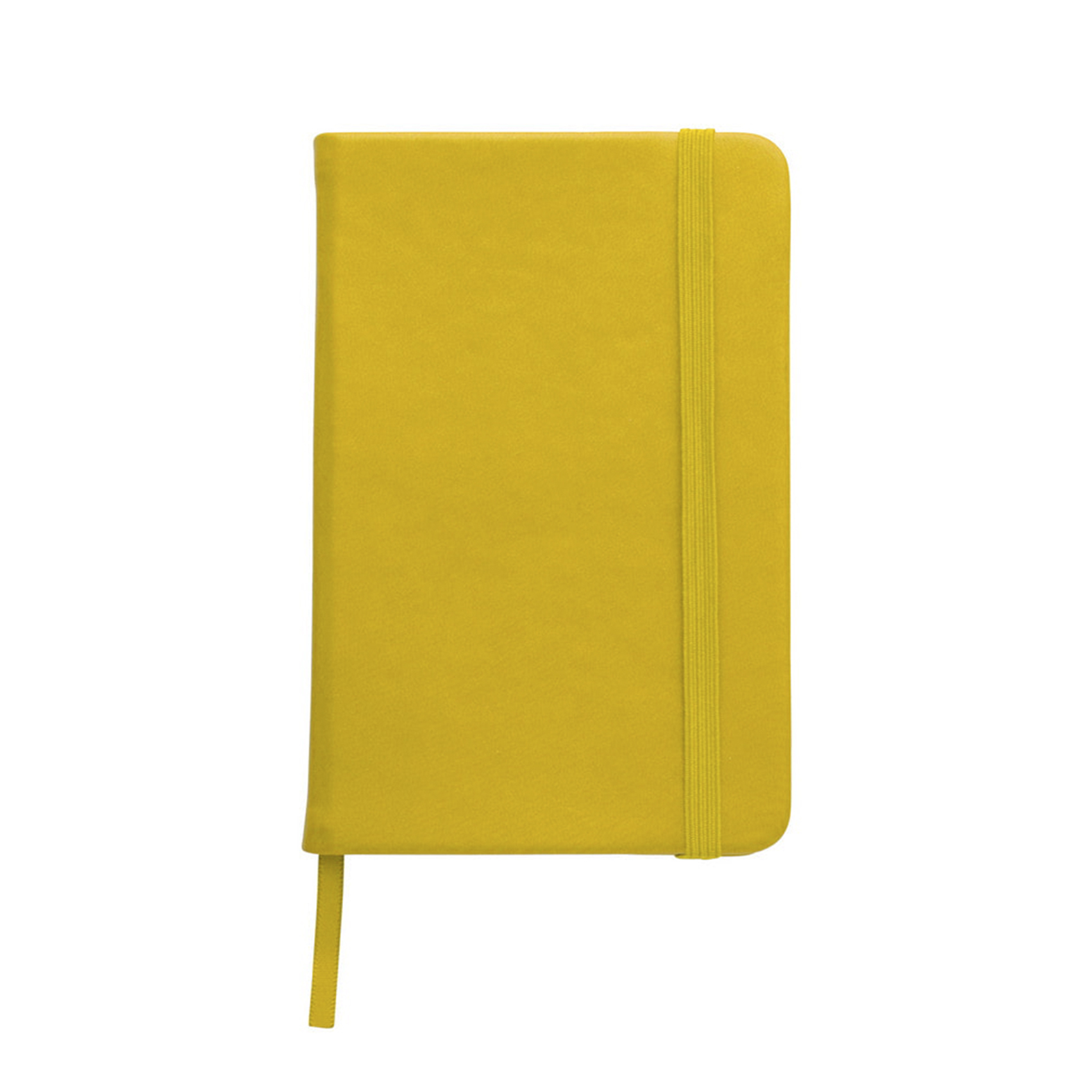 Записна книжка формату А6 з резинкою та закладкою. Тверда кольорова обкладинка виготовлена зі штучної шкіри на основі поліуретану.