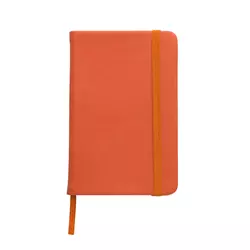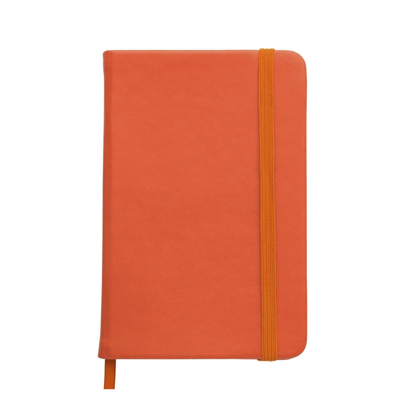 Записна книжка формату А6 з резинкою та закладкою. Тверда кольорова обкладинка виготовлена зі штучної шкіри на основі поліуретану.