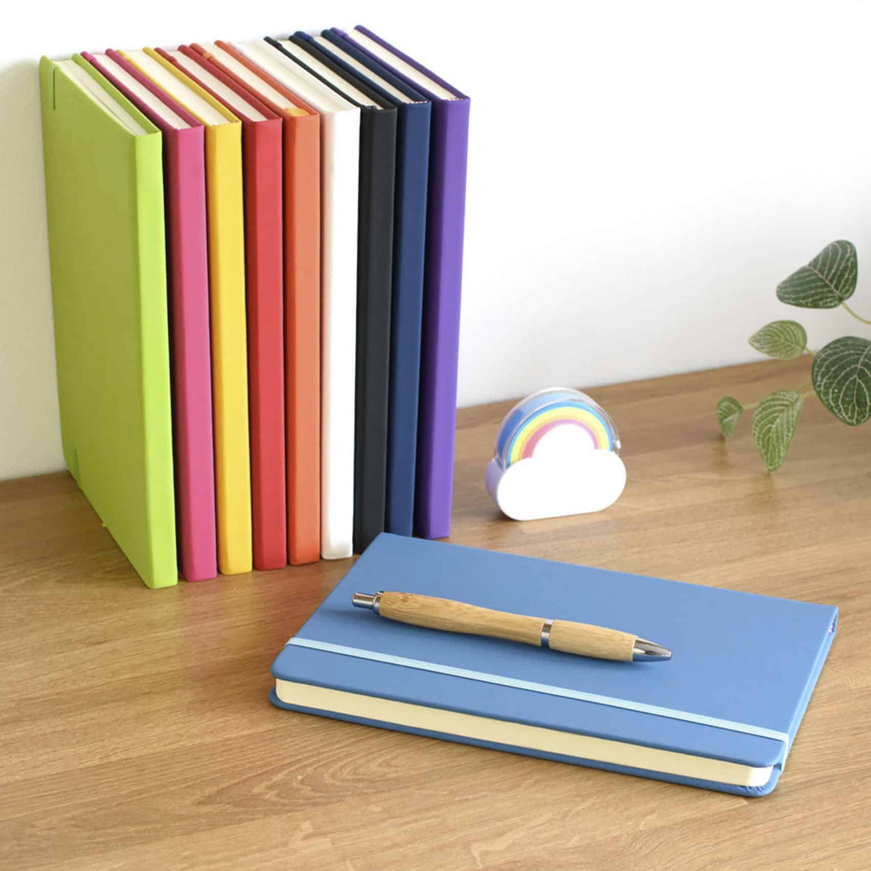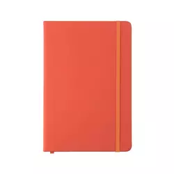 Записна книжка формату А5 з резинкою та закладкою. Тверда кольорова обкладинка виготовлена зі штучної шкіри на основі поліуретану.