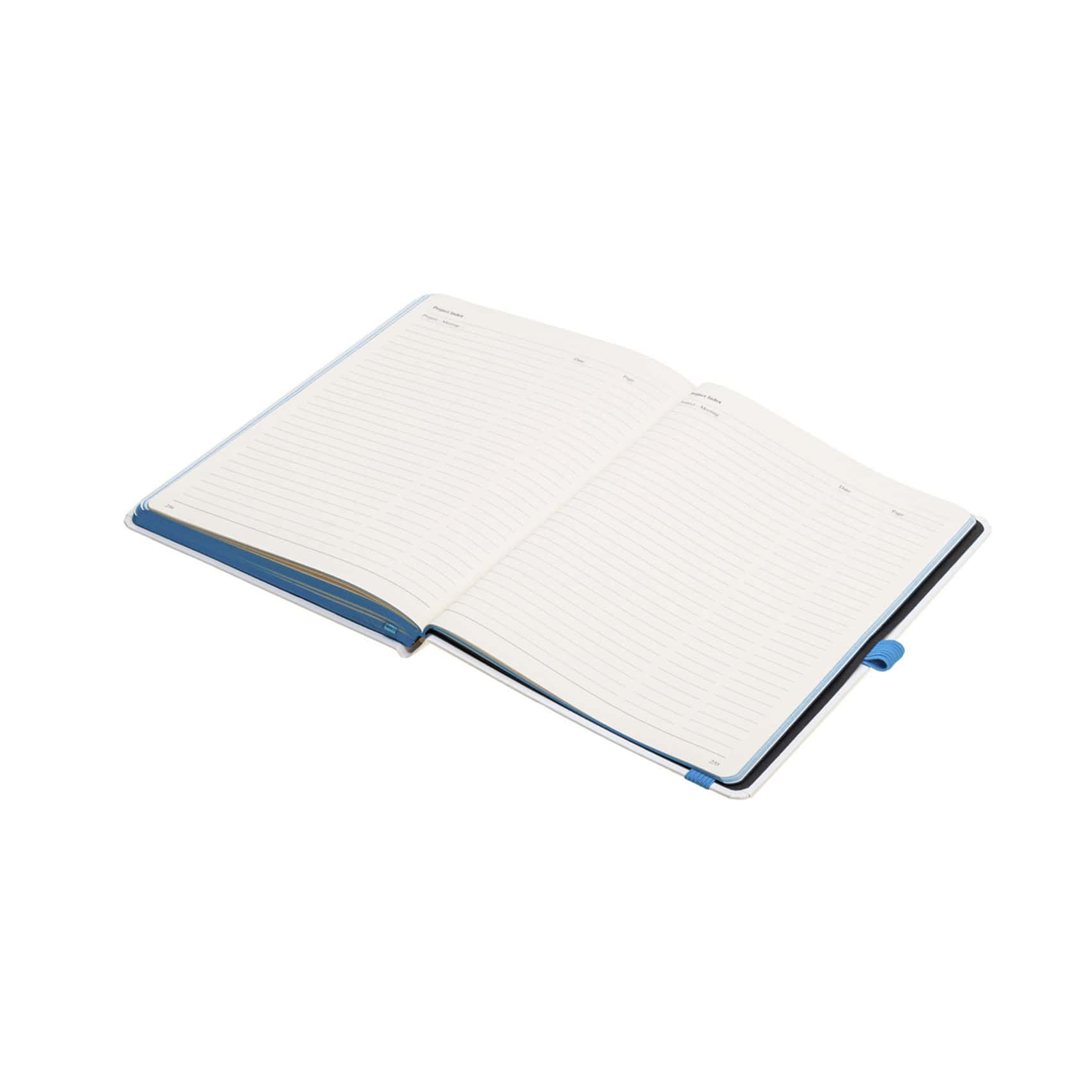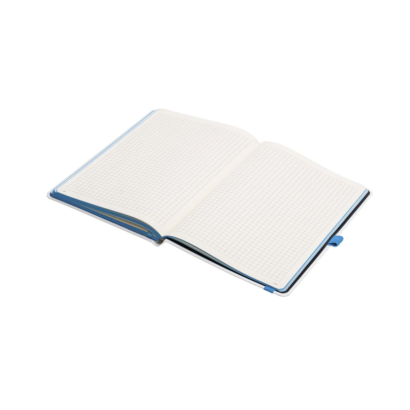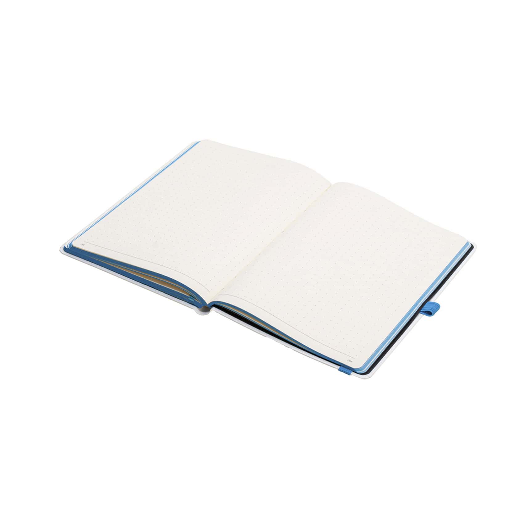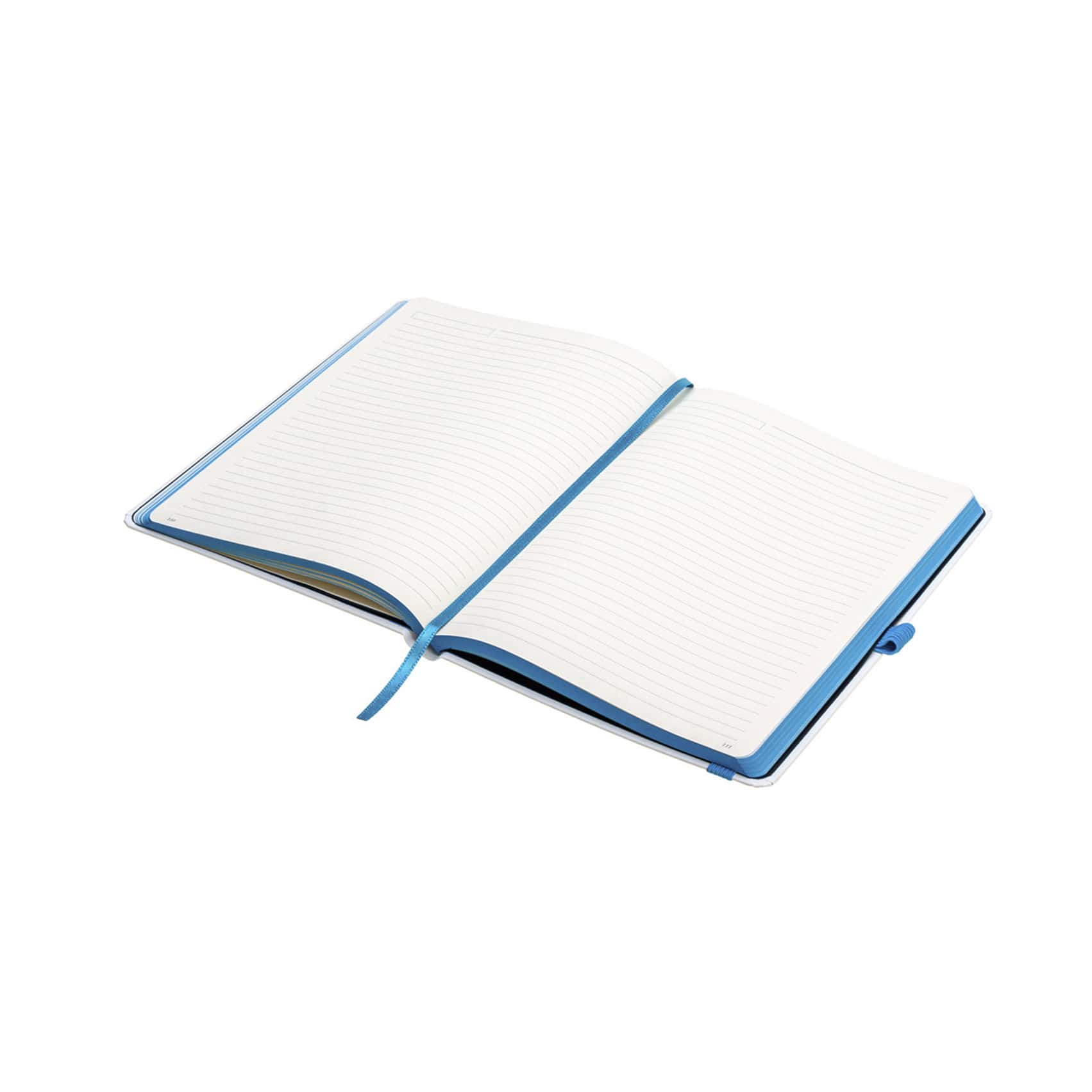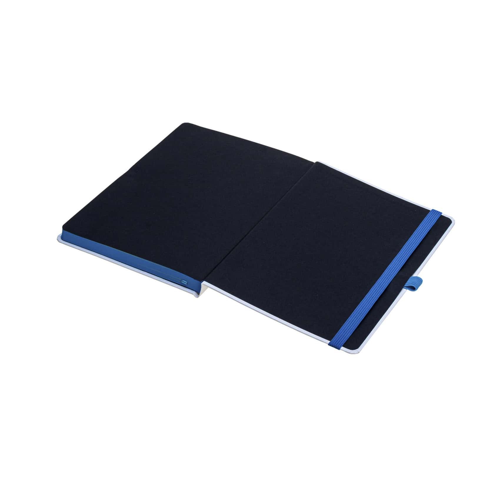 Записна книжка з блоком кольору слонової кістки у лінійку і кольоровим зрізом блоку в колір резинки-фіксатора. Блок із нумерацією сторінок. Додатково є 20 сторінок в крапку, 20 сторінок у клітинку, 9 сторінок для систематизації проектів, а також 8 аркушів без розмітки з перфорацією. Папір сертифікований FSC. Тверда обкладинка з покриттям із високоякісного італійського шкірзамінника на паперовій основі.