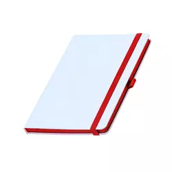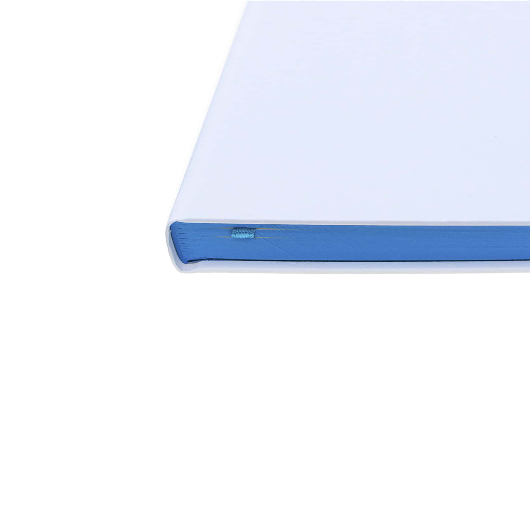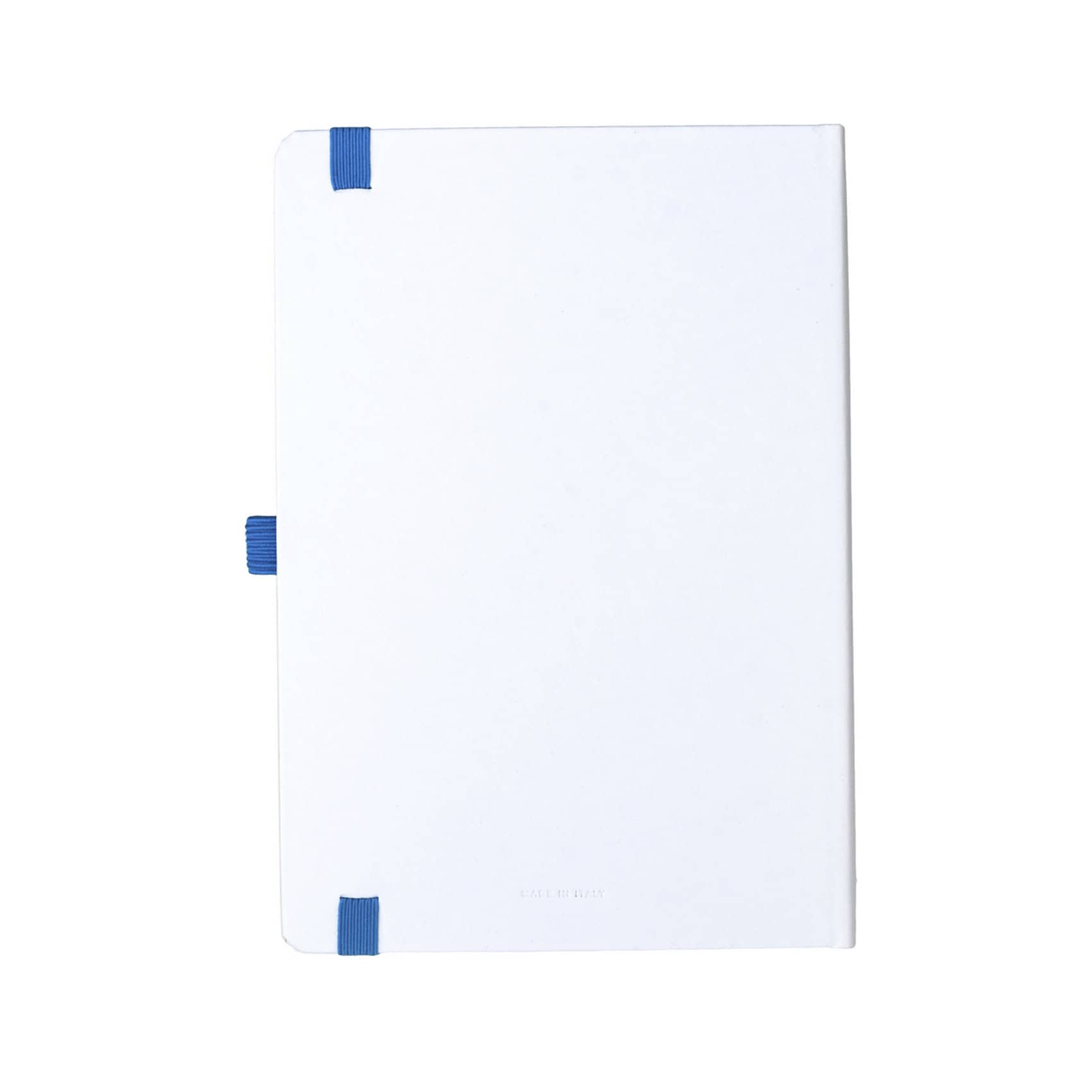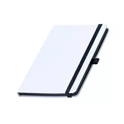 Матова обкладинка із закругленими кутами виконана в білому кольорі та має резинку-тримач для ручки. Резинки та лясе виготовлені в тон обкладинки. Форзаци із чорного дизайнерського паперу 140 г/м².