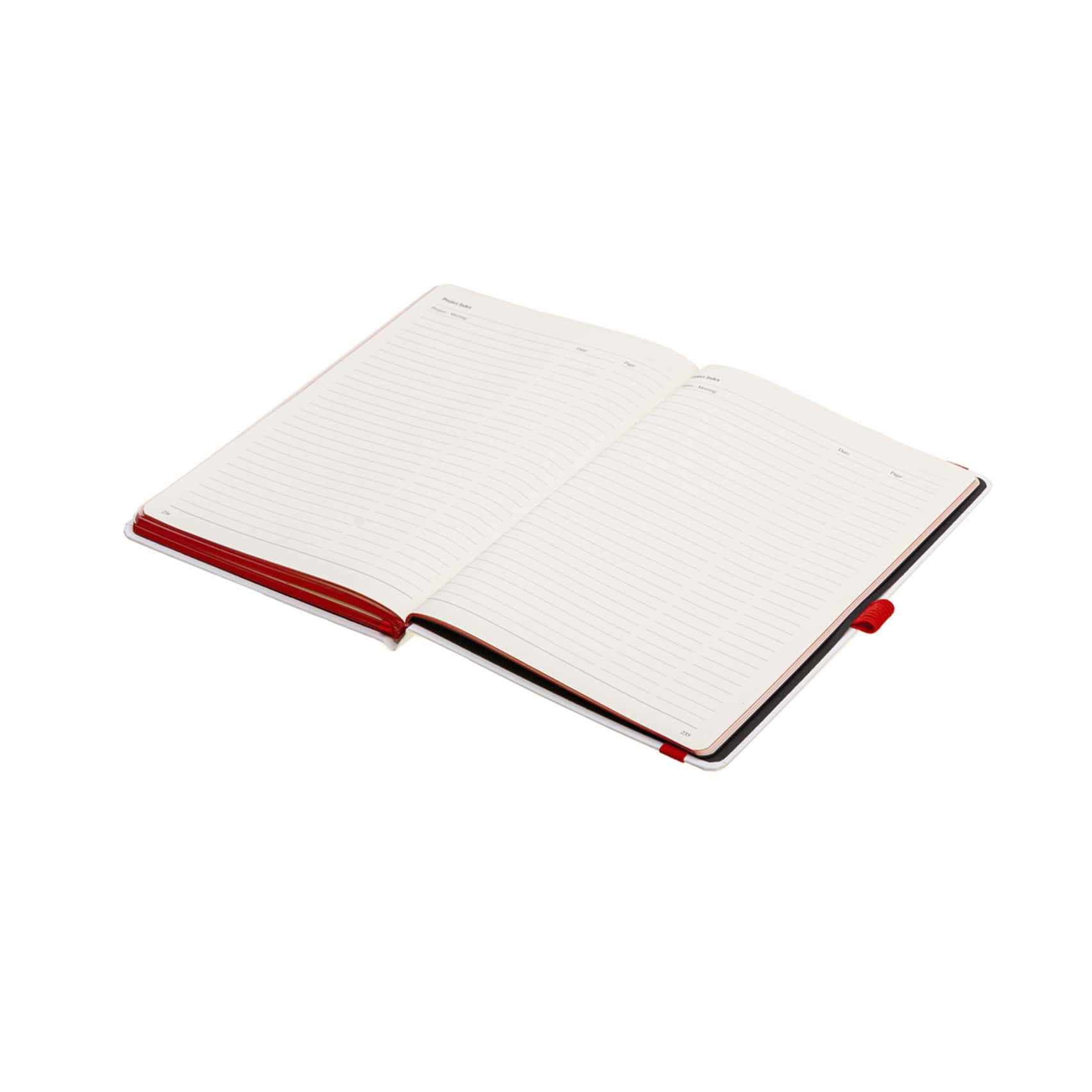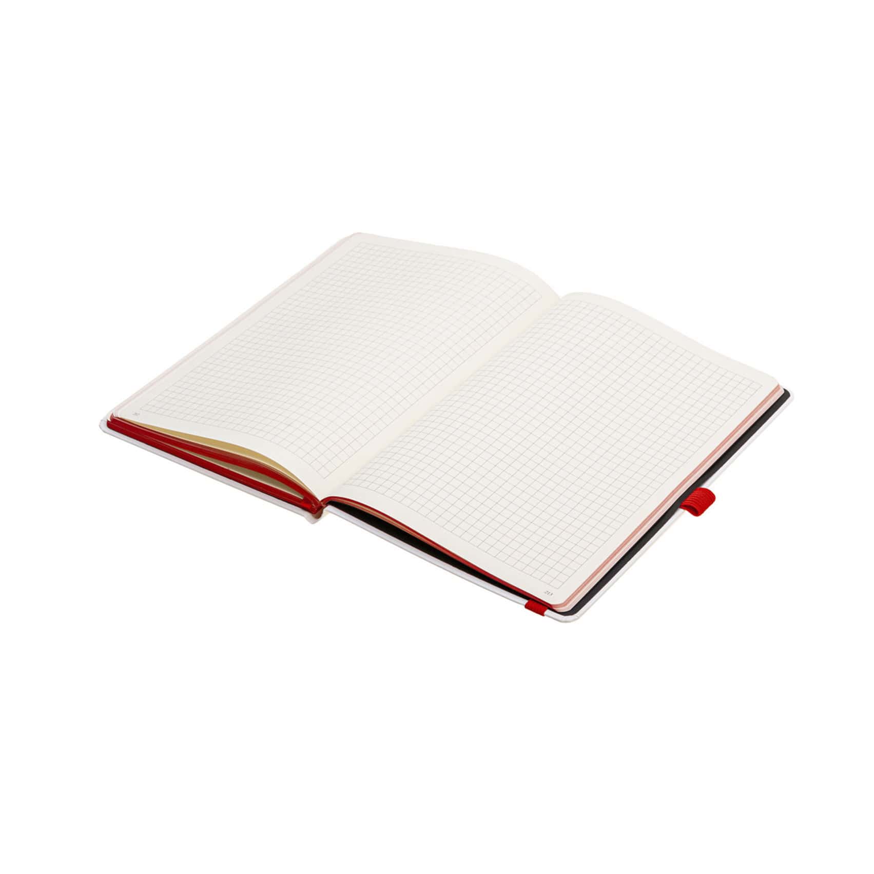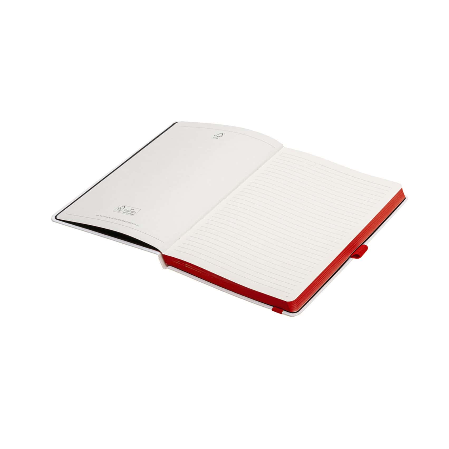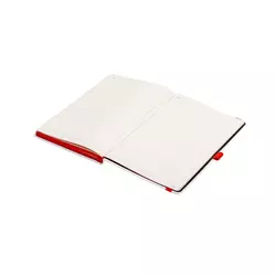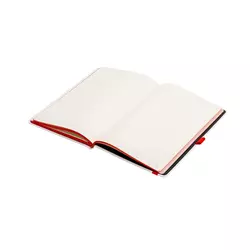 Записна книжка з блоком кольору слонової кістки у лінійку і кольоровим зрізом блоку в колір резинки-фіксатора. Блок із нумерацією сторінок. Додатково є 20 сторінок в крапку, 20 сторінок у клітинку, 9 сторінок для систематизації проектів, а також 8 аркушів без розмітки з перфорацією. Папір сертифікований FSC. Тверда обкладинка з покриттям із високоякісного італійського шкірзамінника на паперовій основі.