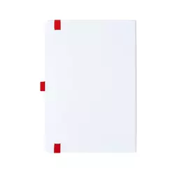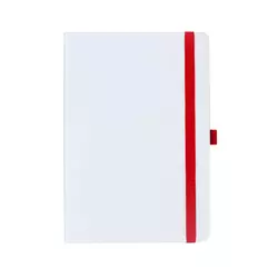 Матова обкладинка із закругленими кутами виконана в білому кольорі та має резинку-тримач для ручки. Резинки та лясе виготовлені в тон обкладинки. Форзаци із чорного дизайнерського паперу 140 г/м².